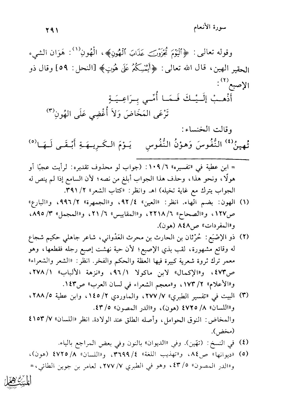 (¬5) "ديوانها" ص 84، و"تهذيب اللغة" 4/ 3699، و"اللسان" 8/ 4725 (هون)، و"الدر المصون" 5/ 43، وهو في الطبري 7/ 277، لعامر بن جوين الطائي، =