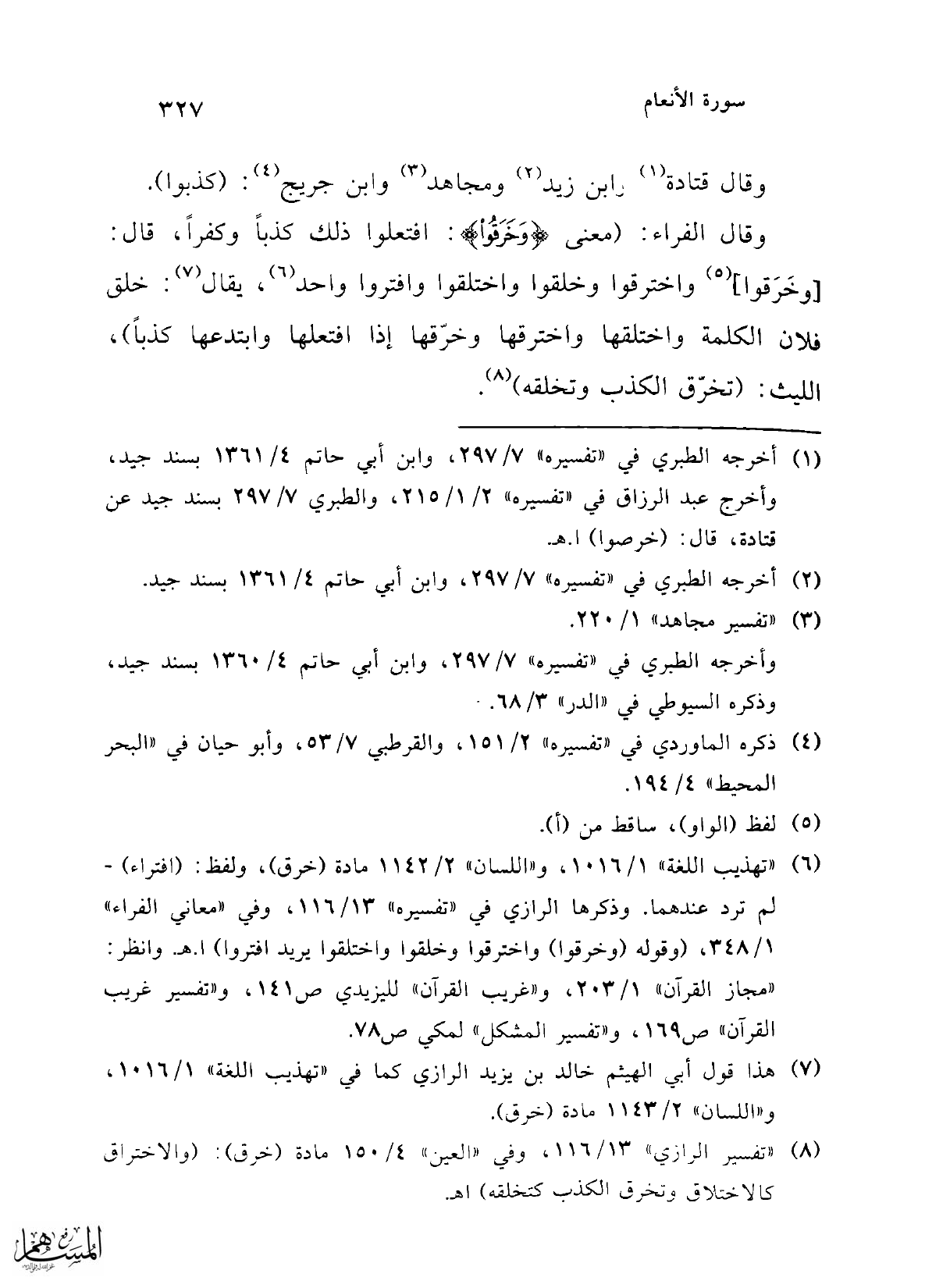 (¬1) أخرجه الطبري في "تفسيره" 7/ 297، وابن أبي حاتم 4/ 1361 بسند جيد، وأخرج عبد الرزاق في "تفسيره" 2/ 1/ 215، والطبري 7/ 297 بسند جيد عن قتادة، قال: (خرصوا) ا. هـ.