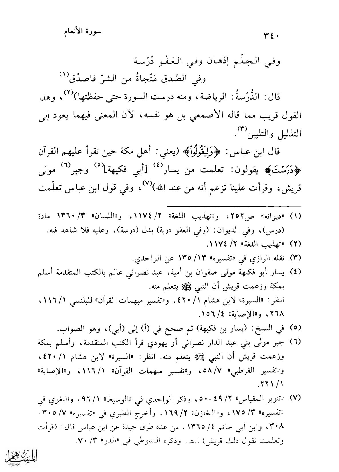 (¬7) "تنوير المقباس" 2/ 49 - 50، وذكر الواحدي في "الوسيط" 1/ 96، والبغوي في "تفسيره" 3/ 175، و"الخازن" 2/ 169، وأخرج الطبري في "تفسيره" 7/ 305 - 308، وابن أبي حاتم 4/ 1365، من عدة طرق جيدة عن ابن عباس قال: (قرأت وتعلمت تقول ذلك قريش) ا. هـ. وذكره السيوطي في "الدر" 3/ 70.