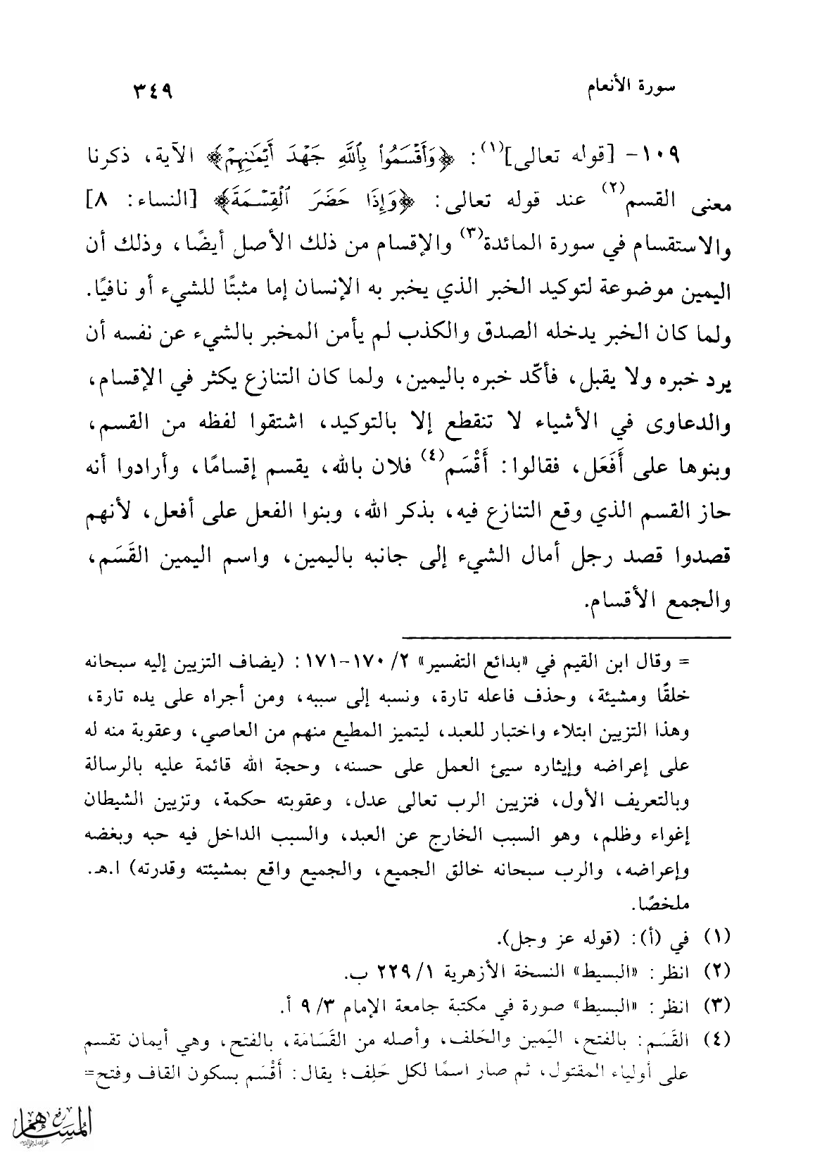 (¬3) انظر: "البسيط" صورة في مكتبة جامعة الإمام 3/ 9 أ.