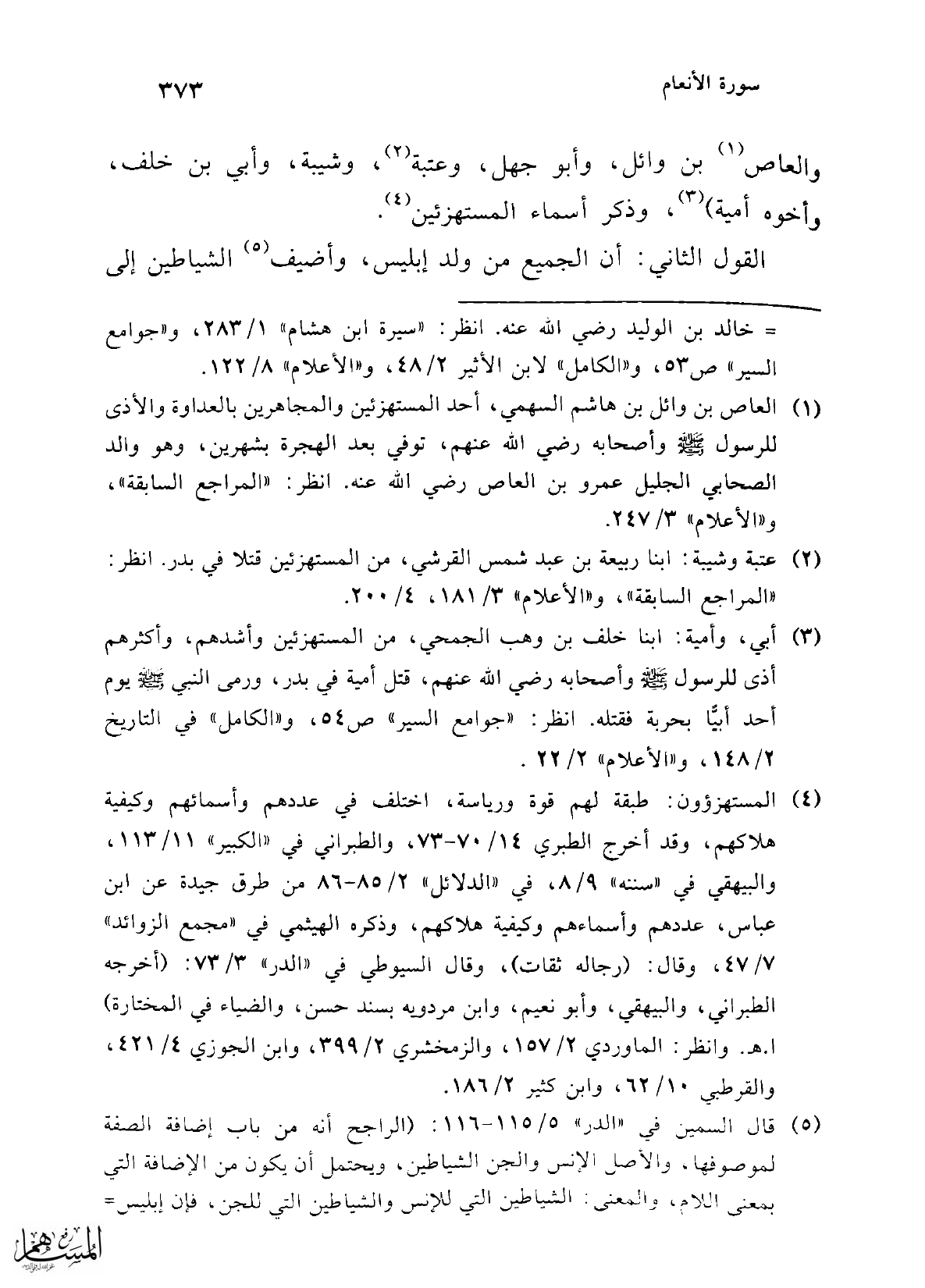 (¬4) المستهزؤون: طبقة لهم قوة ورياسة، اختلف في عددهم وأسمائهم وكيفية هلاكهم، وقد أخرج الطبري 14/ 70 - 73، والطبراني في "الكبير" 11/ 113، والبيهقي في "سننه" 9/ 8، في "الدلائل" 2/ 85 - 86 من طرق جيدة عن ابن عباس، عددهم وأسماءهم وكيفية هلاكهم، وذكره الهيثمي في "مجمع الزوائد" 7/ 47، وقال: (رجاله ثقات)، وقال السيوطي في "الدر" 3/ 73: (أخرجه الطبراني، والبيهقي، وأبو نعيم، وابن مردويه بسند حسن، والضياء في المختارة) ا. هـ وانظر: الماوردي 2/ 157، والزمخشري 2/ 399، وابن الجوزي 4/ 421، والقرطبي 10/ 62، وابن كثير 2/ 186.