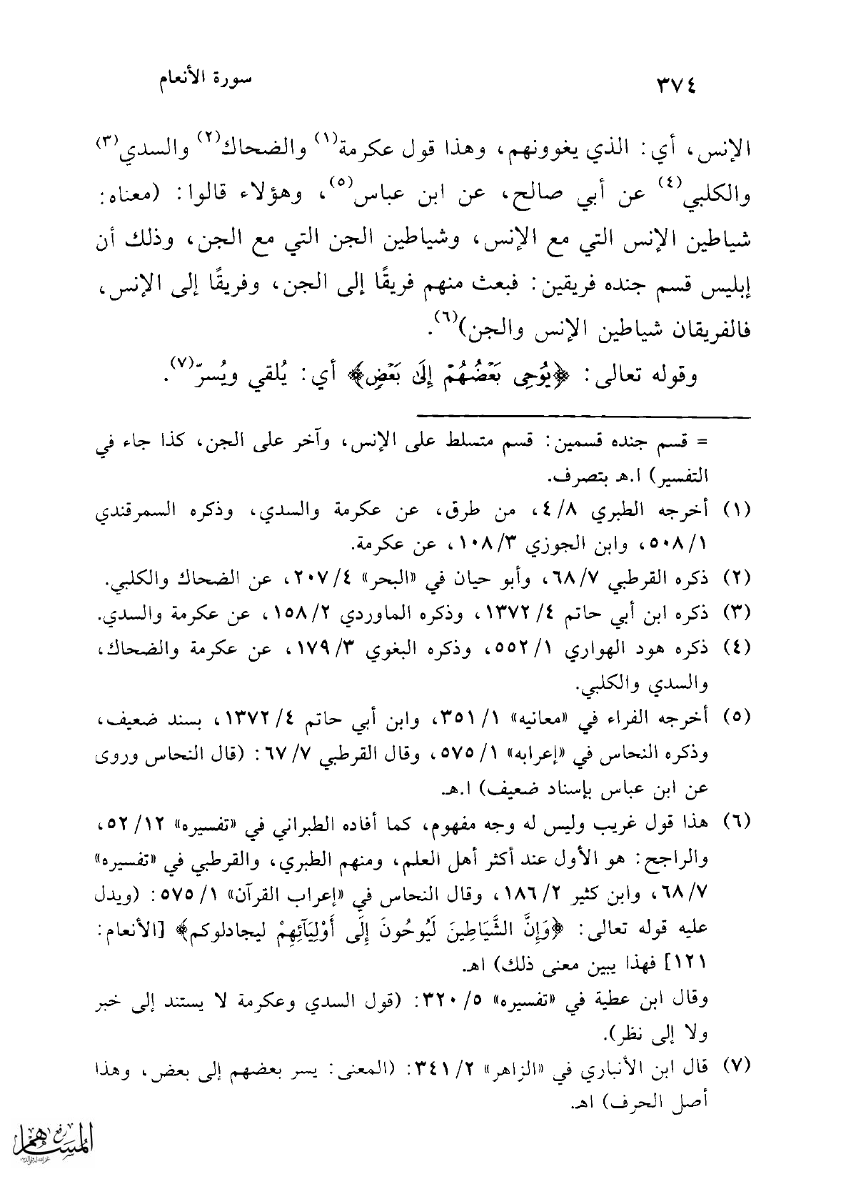 (¬6) هذا قول غريب وليس له وجه مفهوم، كما أفاده الطبراني في "تفسيره" 12/ 52، والراجح: هو الأول عند أكثر أهل العلم، ومنهم الطبري، والقرطبي في "تفسيره" 7/ 68، وابن كثير 2/ 186، وقال النحاس في "إعراب القرآن" 1/ 575: (ويدل عليه قوله تعالى: {وَإِنَّ الشَّيَاطِينَ لَيُوحُونَ إِلَى أَوْلِيَائِهِمْ لِيُجَادِلُوكُمْ} [الأنعام: 121] فهذا يبين معى ذلك) اهـ.