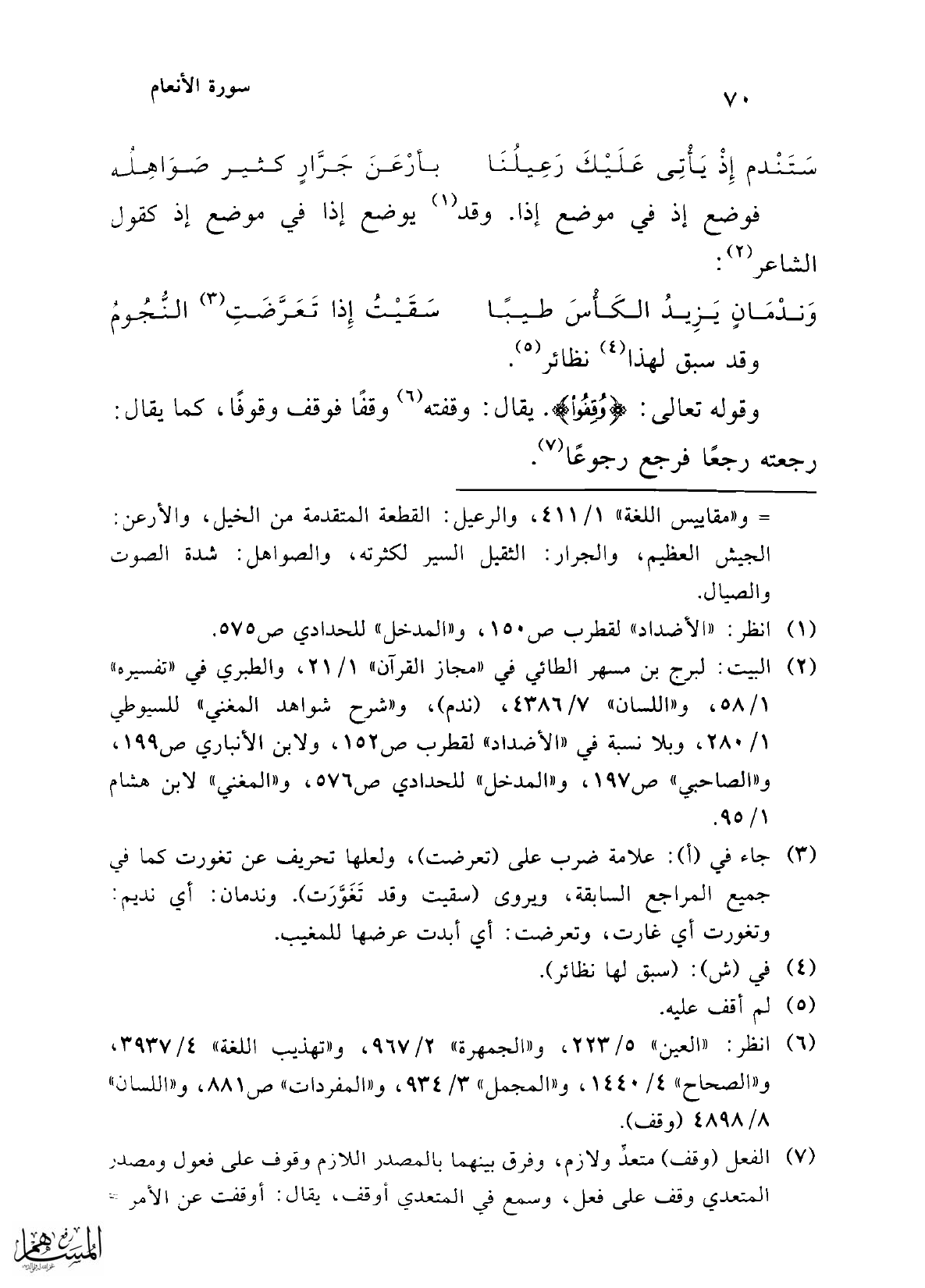 (¬2) البيت: لبرج بن مسهر الطائي في "مجاز القرآن" 1/ 21، والطبري في "تفسيره" 1/ 58، و"اللسان" 7/ 4386، (ندم)، و"شرح شواهد المغني" للسيوطي 1/ 280، وبلا نسبة في "الأضداد" لقطرب ص 152، ولابن الأنباري ص 199، و"الصاحبي" ص 197، و"المدخل" للحدادي ص 576، و"المغني" لابن هشام 1/ 95.