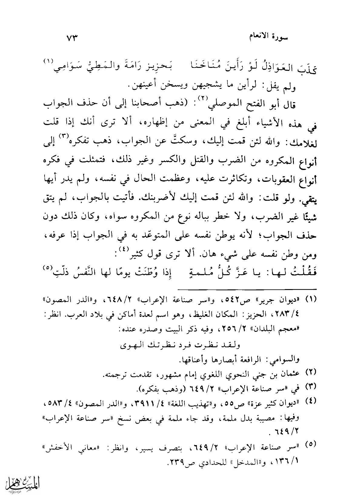(¬5) "سر صناعة الإعراب" 2/ 649، بتصرف يسير, وانظر: "معاني الأخفش" 1/ 136، و"المدخل" للحدادي ص 239.