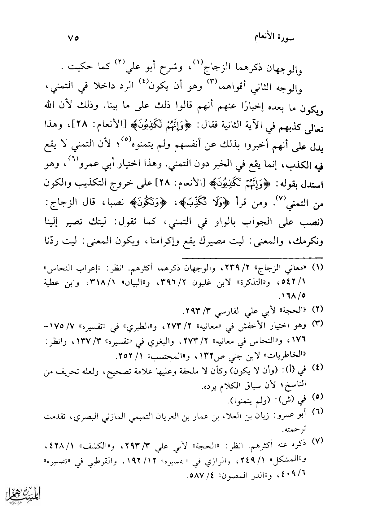 (¬2) "الحجة" لأبي علي الفارسي 3/ 293.