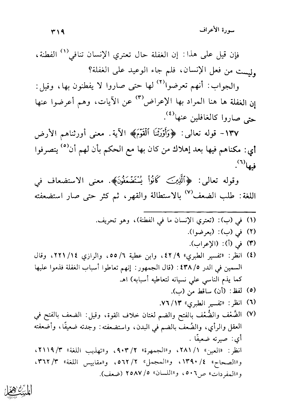 وقوله تعالى: {الَّذِينَ كَانُوا يُسْتَضْعَفُونَ}. معنى الاستضعاف في اللغة: طلب الضعف (¬7) بالاستطالة والقهر، ثم كثر حتى صار استضعفته