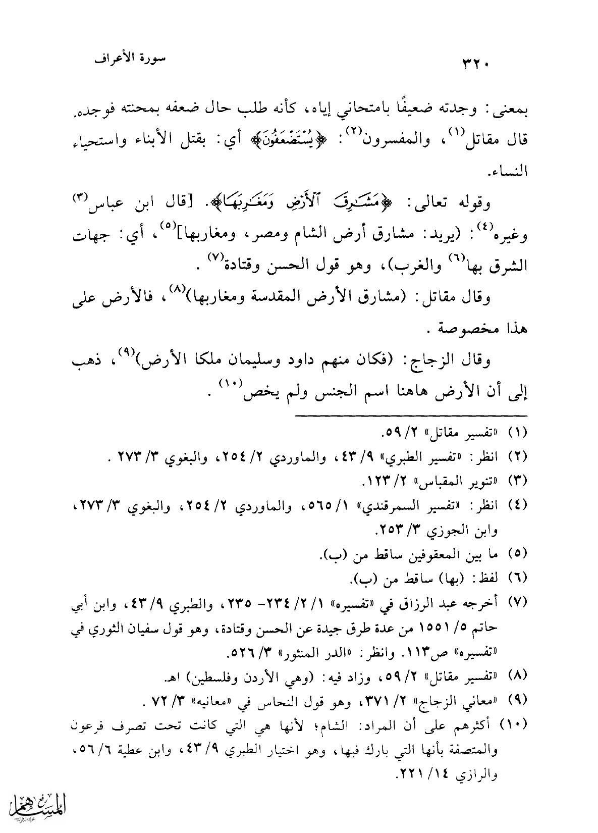(¬10) أكثرهم على أن المراد: الشام؛ لأنها هي التي كانت تحت تصرف فرعون والمتصفة بأنها التي بارك فيها، وهو اختيار الطبري 9/ 43، وابن عطية 6/ 56، والرازي 14/ 221.