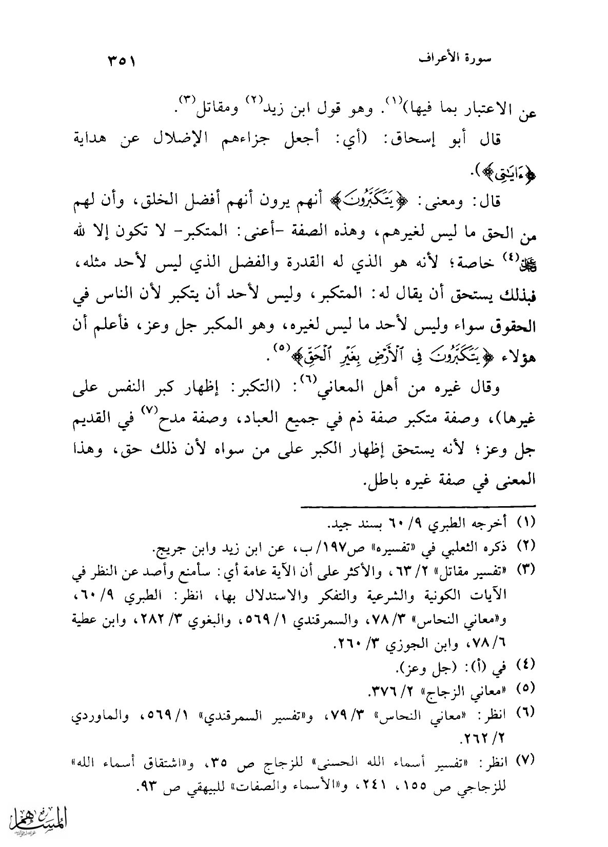 (¬7) انظر: "تفسير أسماء الله الحسنى" للزجاج ص 35، و"اشقاق أسماء الله" للزجاجي ص 155، 241، و"الأسماء والصفات" للبيهقي ص 93.