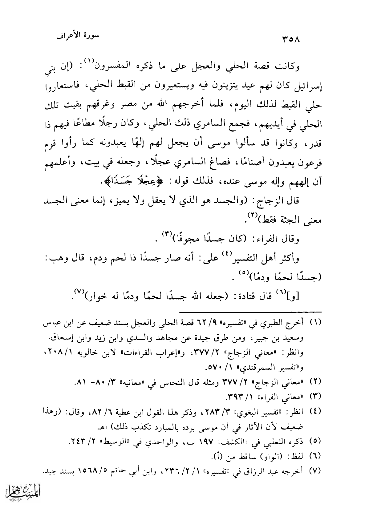 (¬1) أخرج الطبري في "تفسيره" 9/ 62 قصة الحلي والعجل بسند ضعيف عن ابن عباس وسعيد بن جبير، ومن طرق جيدة عن مجاهد والسدي وابن زيد وابن إسحاق. وانظر: "معاني الزجاج" 2/ 377، و"إعراب القراءات" لابن خالويه 1/ 208 , و"تفسير السمرقندي" 1/ 570.