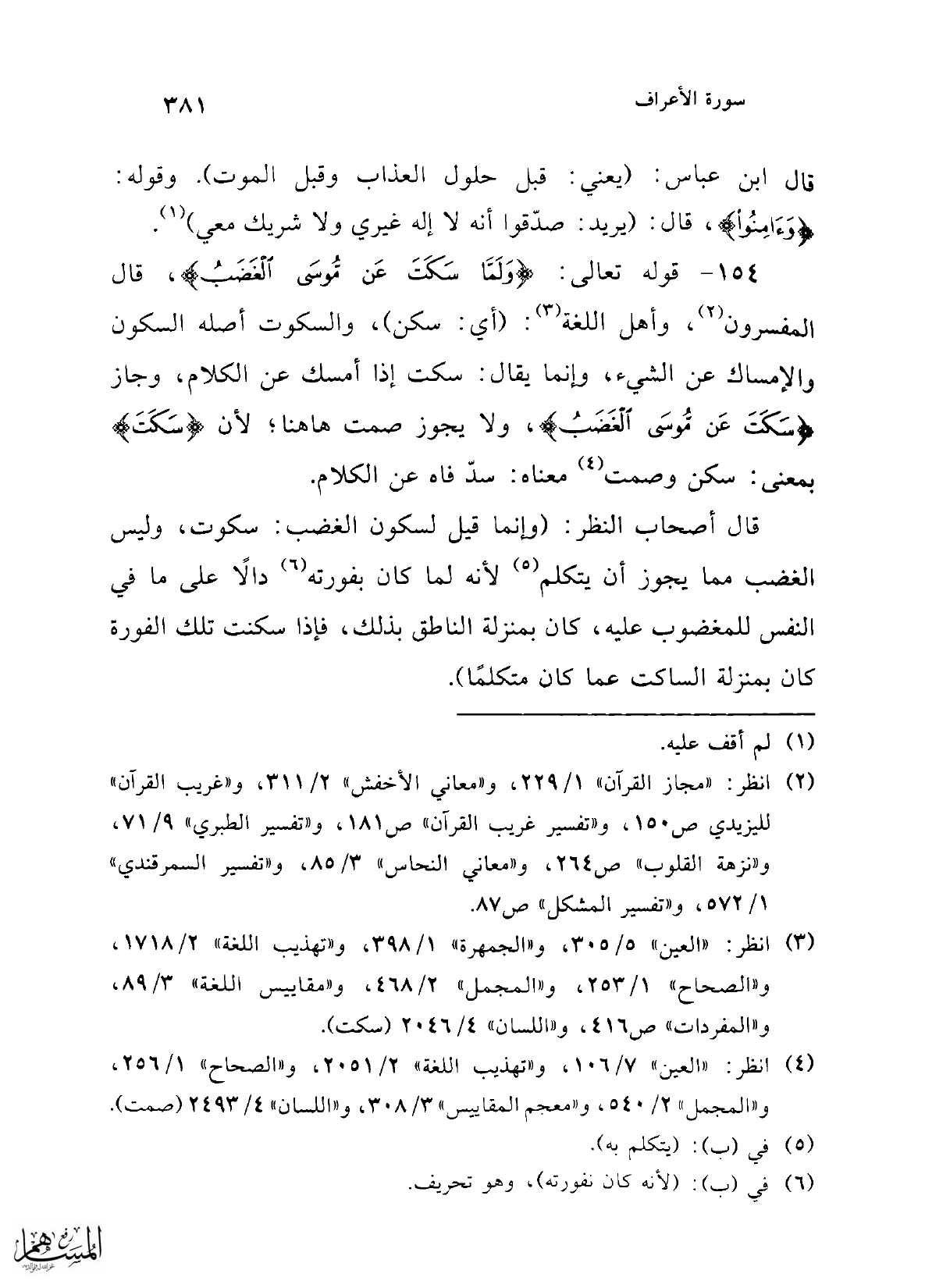 (¬3) انظر: "العين" 5/ 305، و"الجمهرة" 1/ 398، و"تهذيب اللغة" 2/ 1718، و"الصحاح" 1/ 253، و"المجمل" 2/ 468، و"مقاييس اللغة" 3/ 89، و"المفردات" ص 416، و"اللسان" 4/ 2046 (سكت).