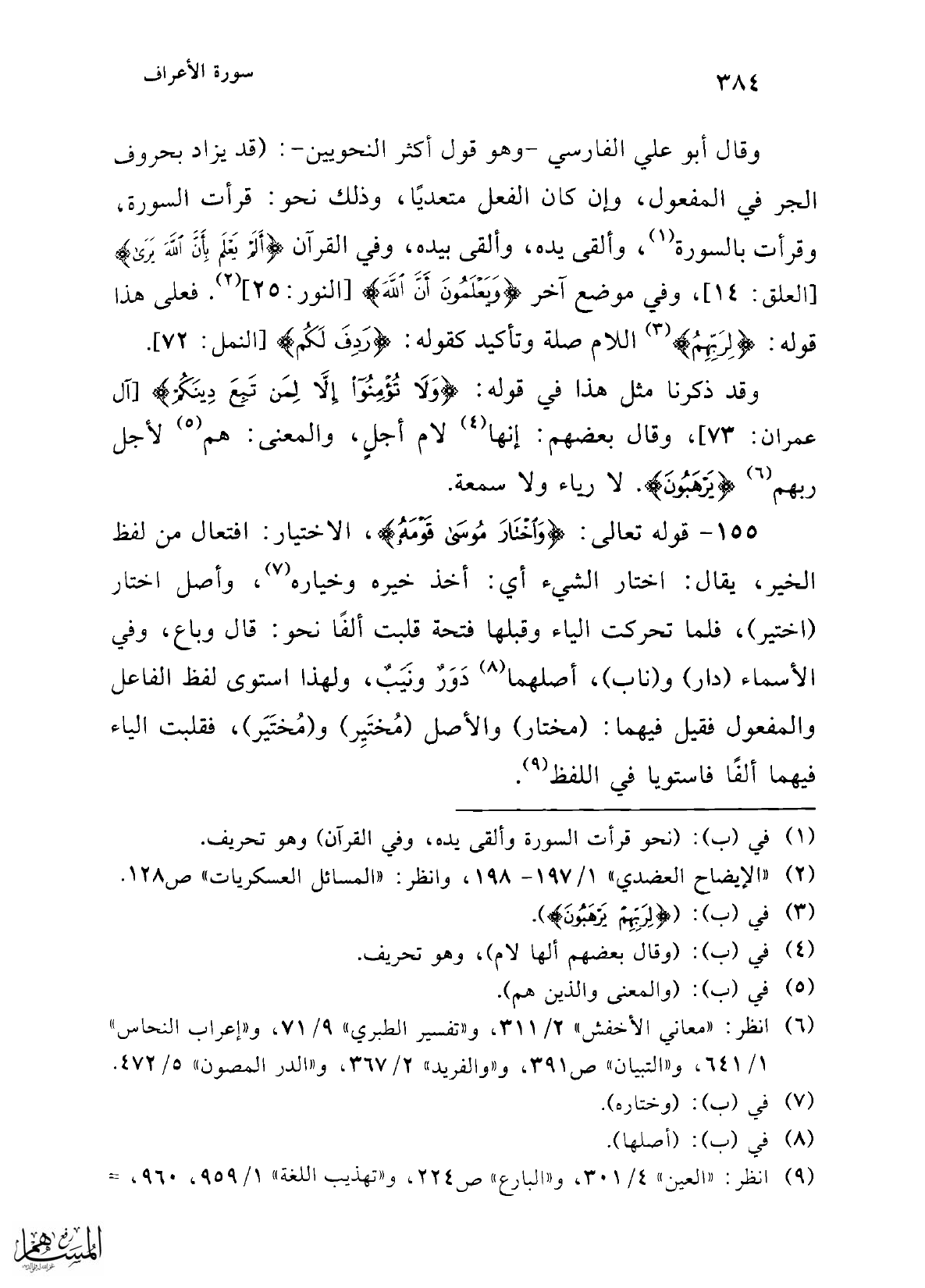 (¬6) انظر: "معاني الأخفش" 2/ 311، و"تفسير الطبري" 9/ 71، و"إعراب النحاس" 1/ 641، و"التبيان" ص 391، و"والفريد" 2/ 367، و"الدر المصون" 5/ 472.