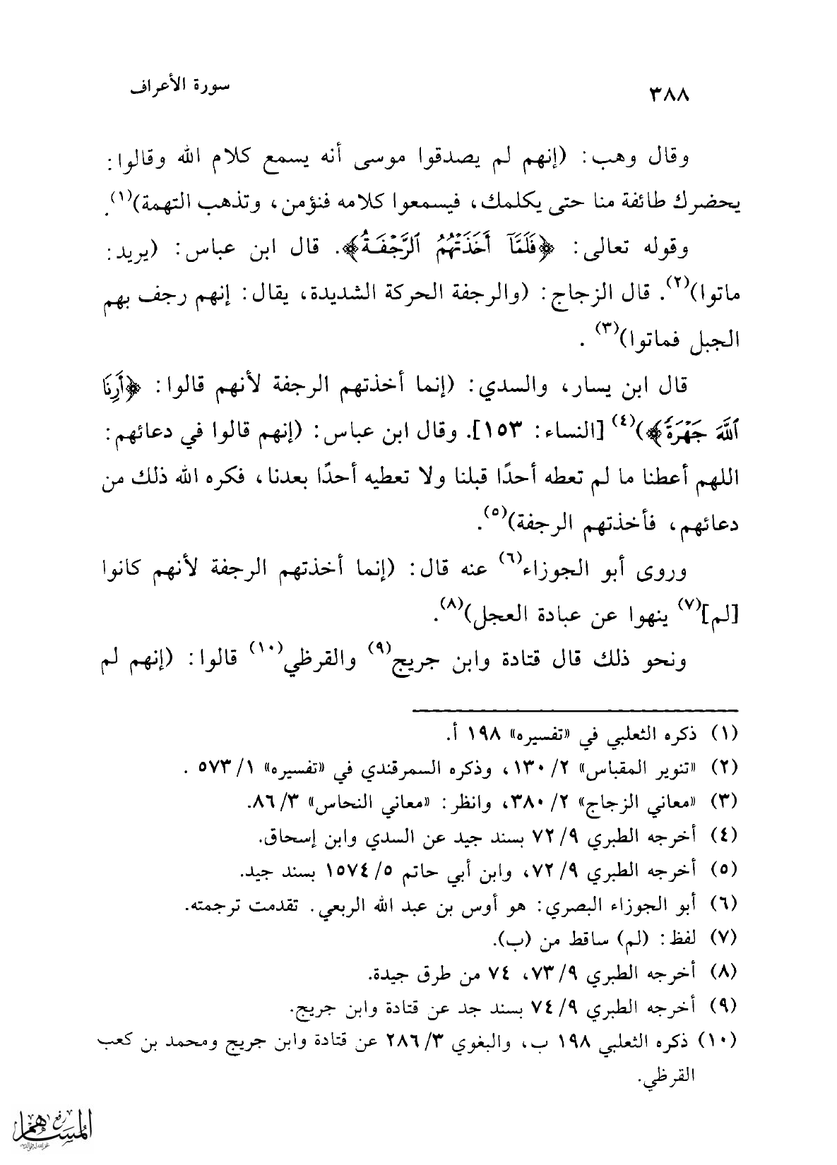 (¬10) ذكره الثعلبي 198 ب، والبغوي 3/ 286 عن قتادة وابن جريج ومحمد بن كعب القرظي.