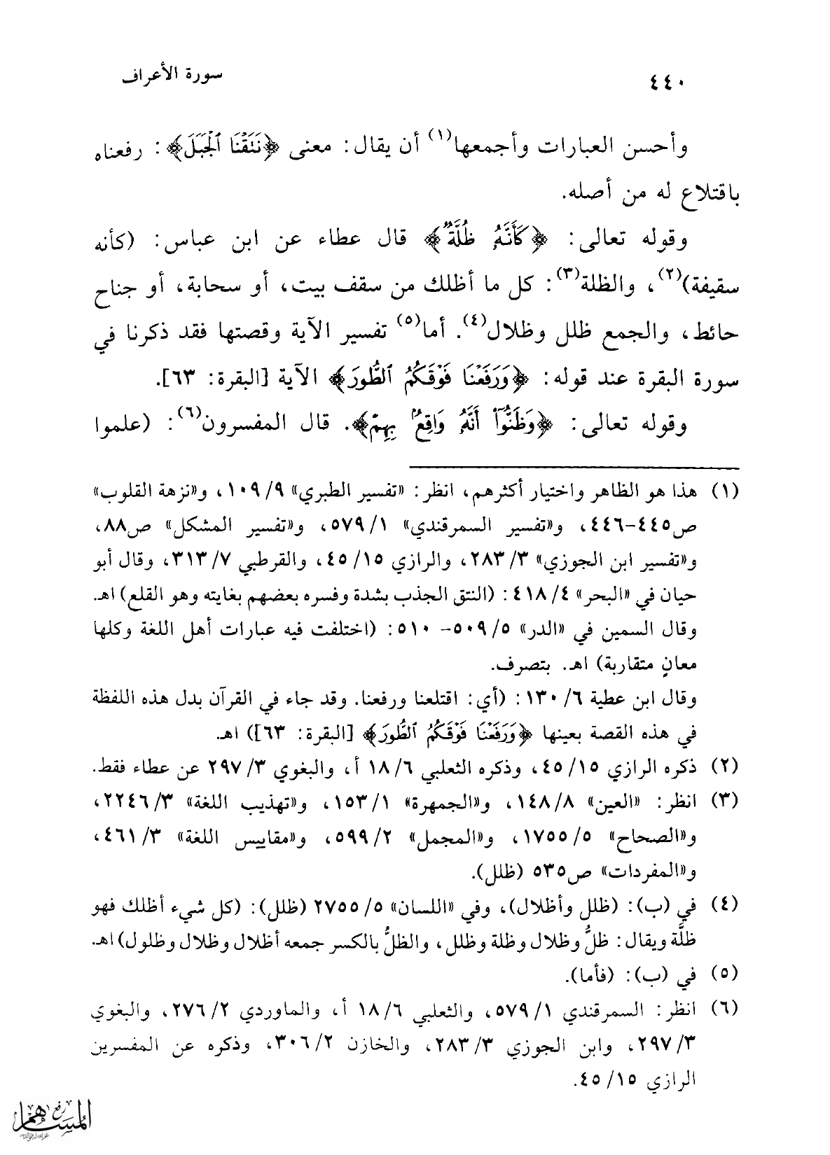 (¬6) انظر: السمرقندي 1/ 579، والثعلبي 6/ 18 أ، والماوردي 2/ 276، والبغوي 3/ 297، وابن الجوزي 3/ 283 , والخازن 2/ 306، وذكره عن المفسرين الرازي 15/ 45.