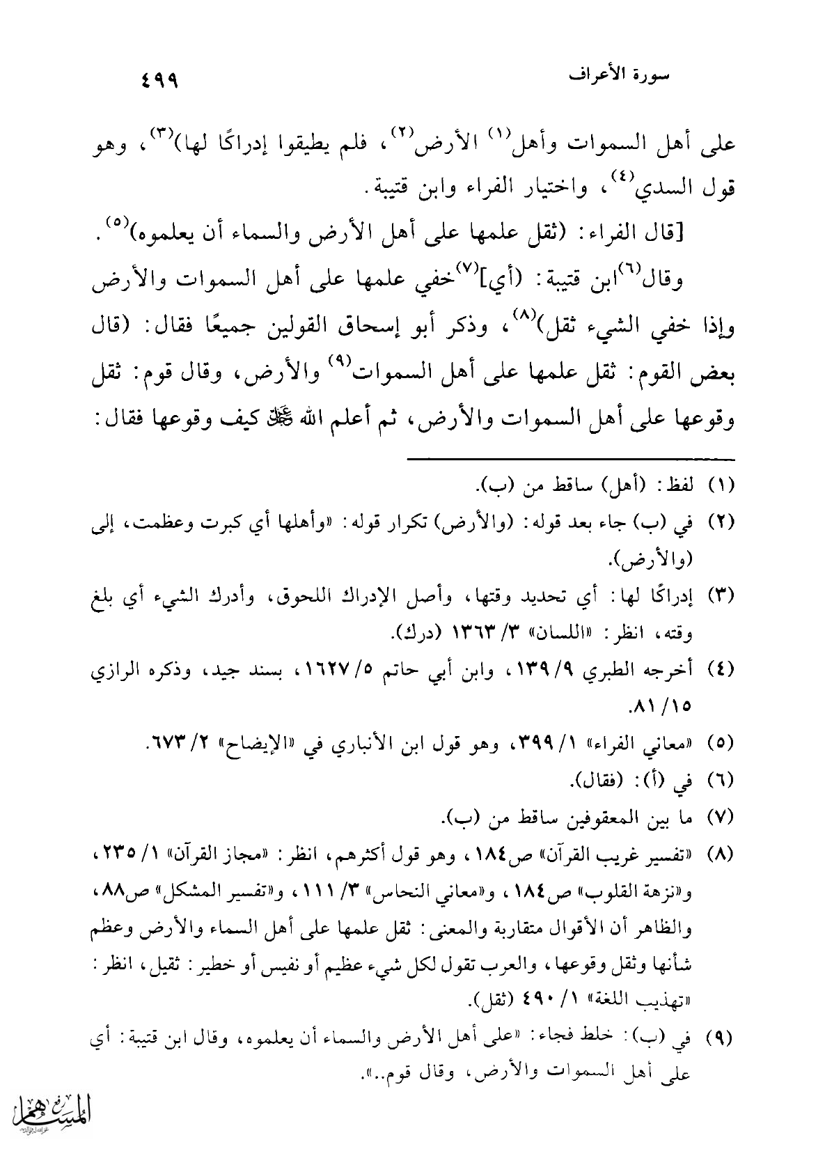 (¬9) في (ب): خلط فجاء: "على أهل الأرض والسماء أن يعلموه، وقال ابن قتيبة: أي على أهل السموات والأرض، وقال قوم .. ".