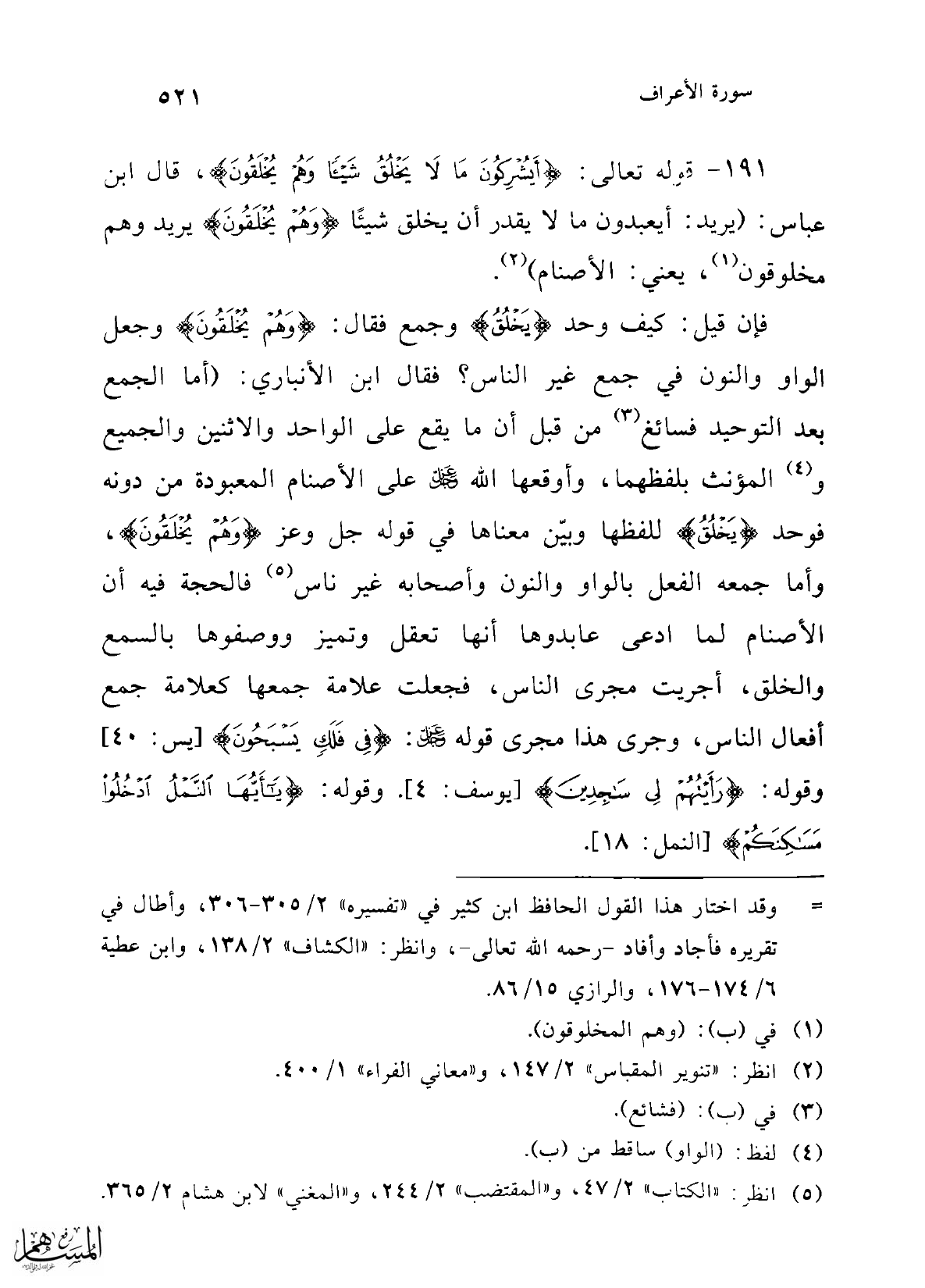 (¬5) انظر: "الكتاب" 2/ 47، و"المقتضب" 2/ 244، و"المغني" لابن هشام 2/ 365.