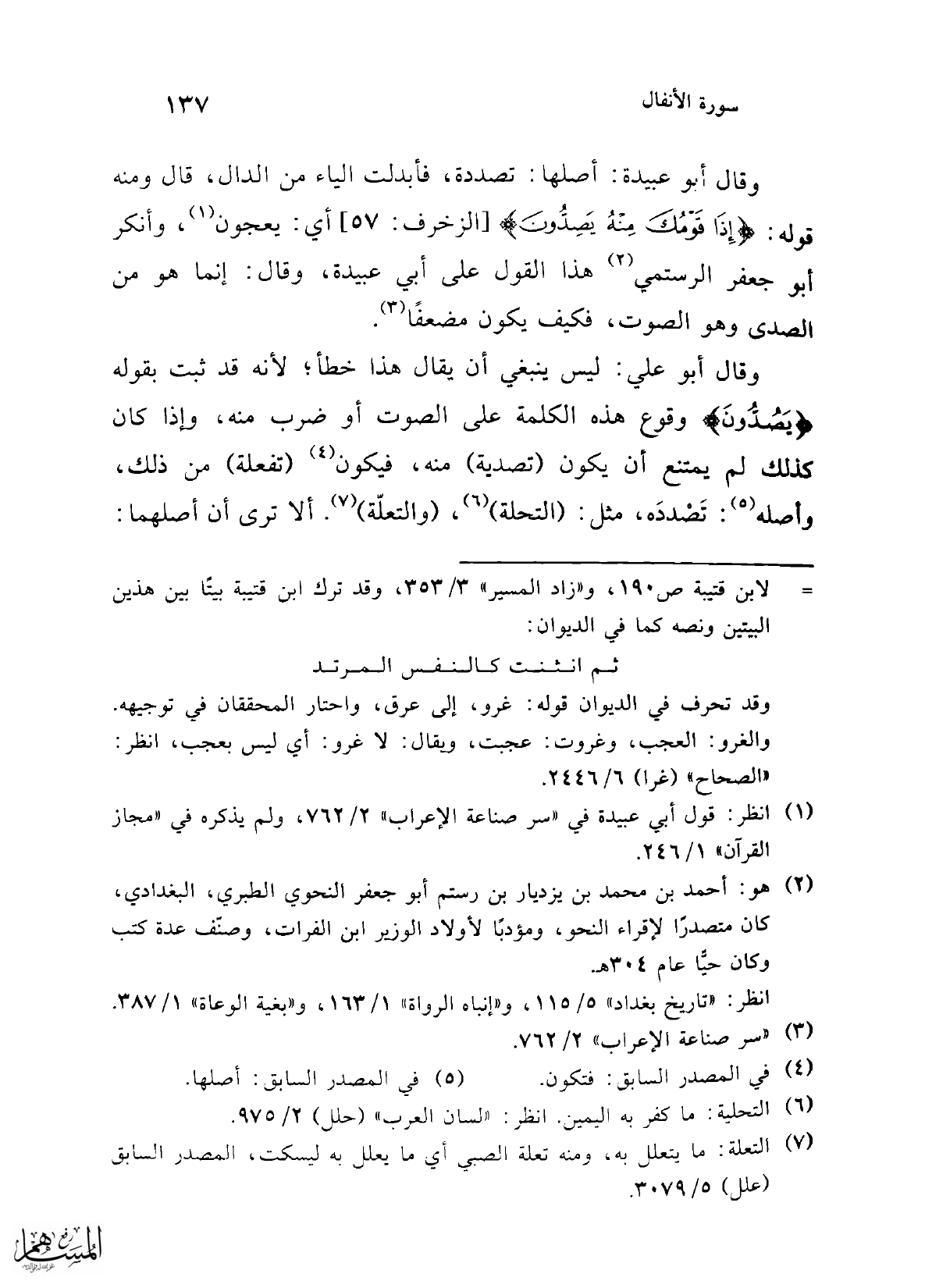 (¬3) "سر صناعة الإعراب" 2/ 762.