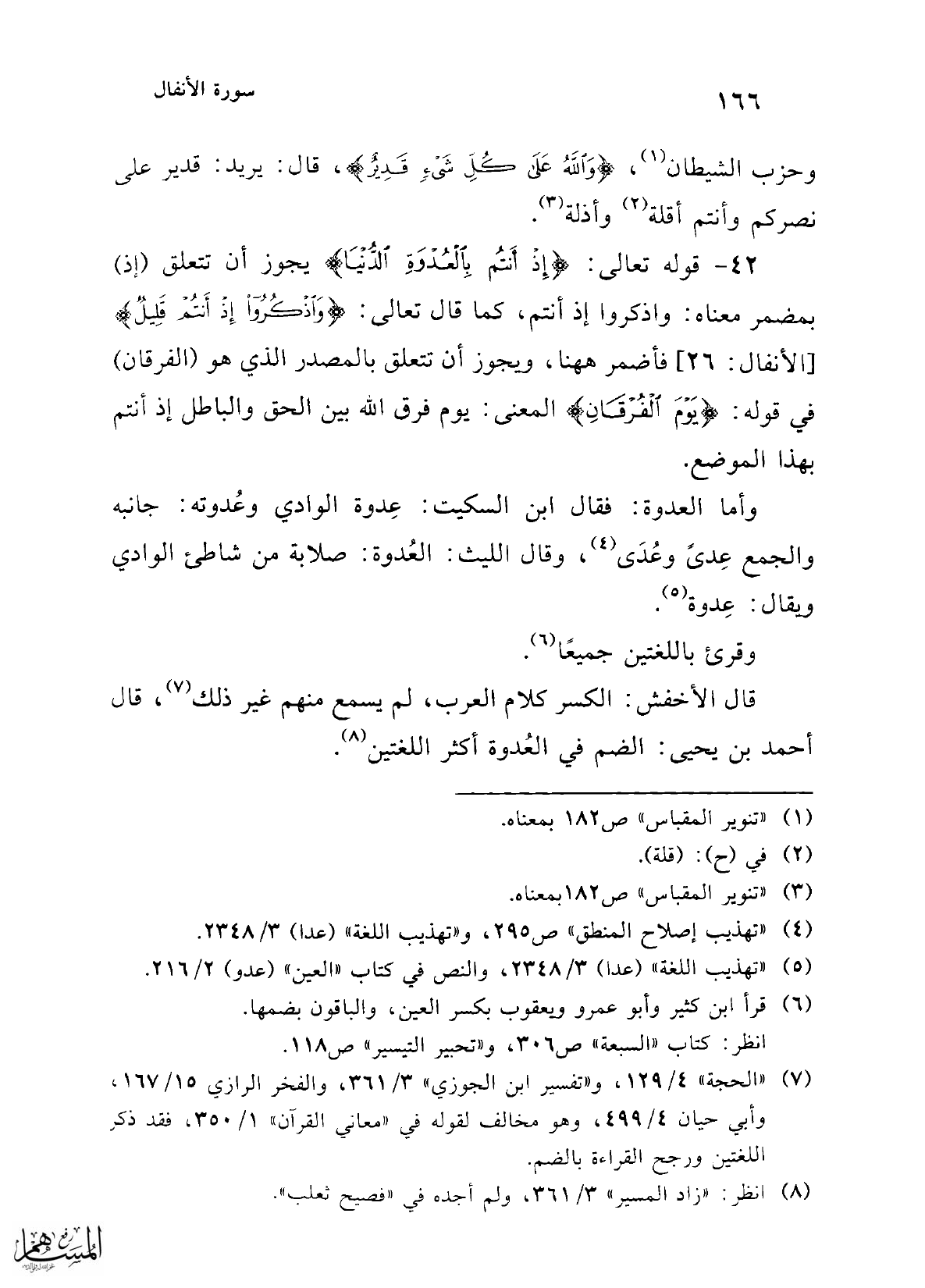 (¬5) "تهذيب اللغة" (عدا) 3/ 2348، والنص في كتاب "العين" (عدو) 2/ 216.