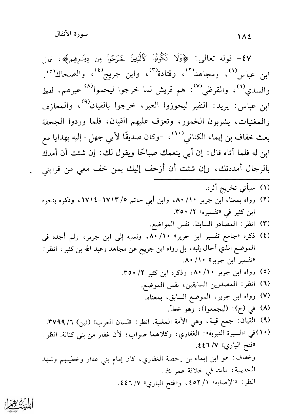 (¬4) ذكره "جامع تفسير ابن جرير" 10/ 80، ونسبه إلى ابن جرير، ولم أجده في الموضع الذي أحال إليه، بل رواه ابن جريج عن مجاهد وعبد الله بن كثير، انظر: "تفسير ابن جرير" 10/ 80.