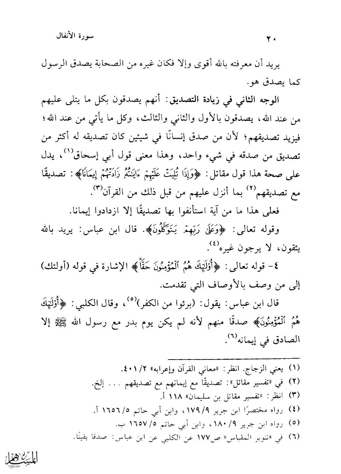 (¬2) في "تفسير مقاتل": تصديقًا مع إيمانهم مع تصديقهم ... إلخ.