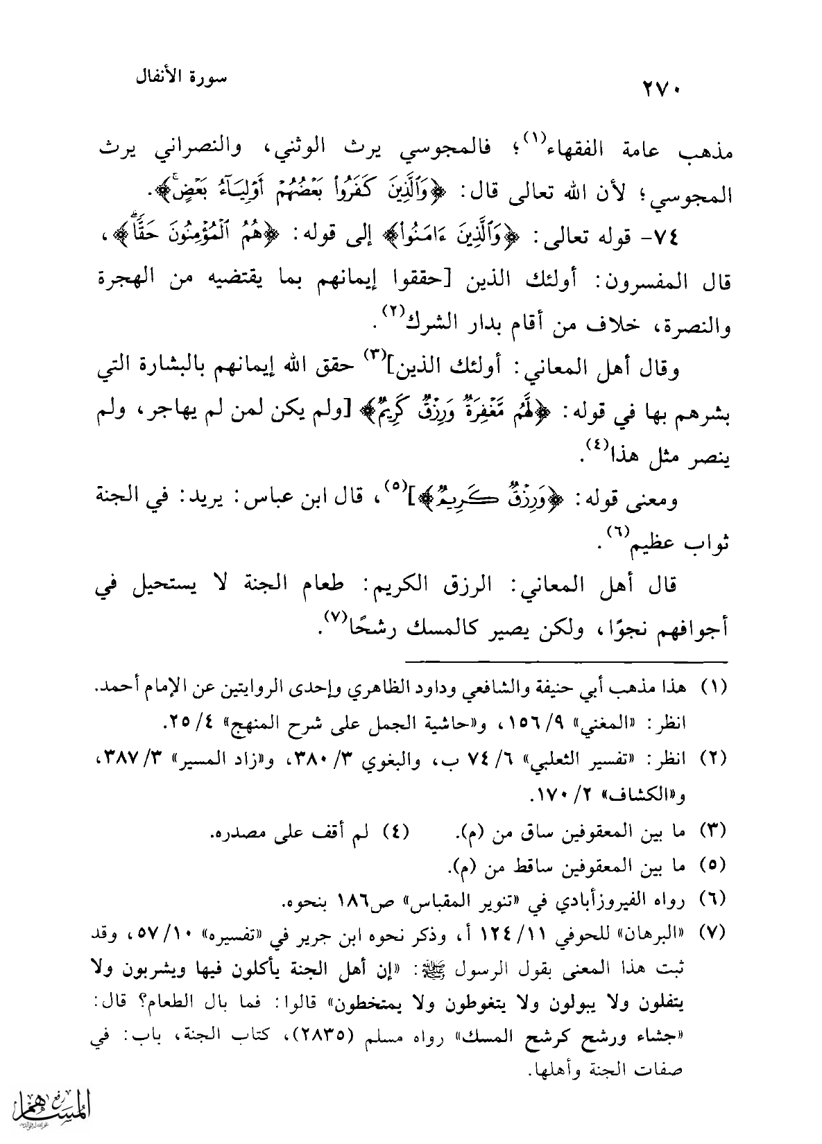 74 - قوله تعالى: {وَالَّذِينَ آمَنُوا} إلى قوله: {هُمُ الْمُؤْمِنُونَ حَقًّا}، قال المفسرون: أولئك الذين [حققوا إيمانهم بما يقتضيه من الهجرة والنصرة، خلاف من أقام بدار الشرك (¬2).