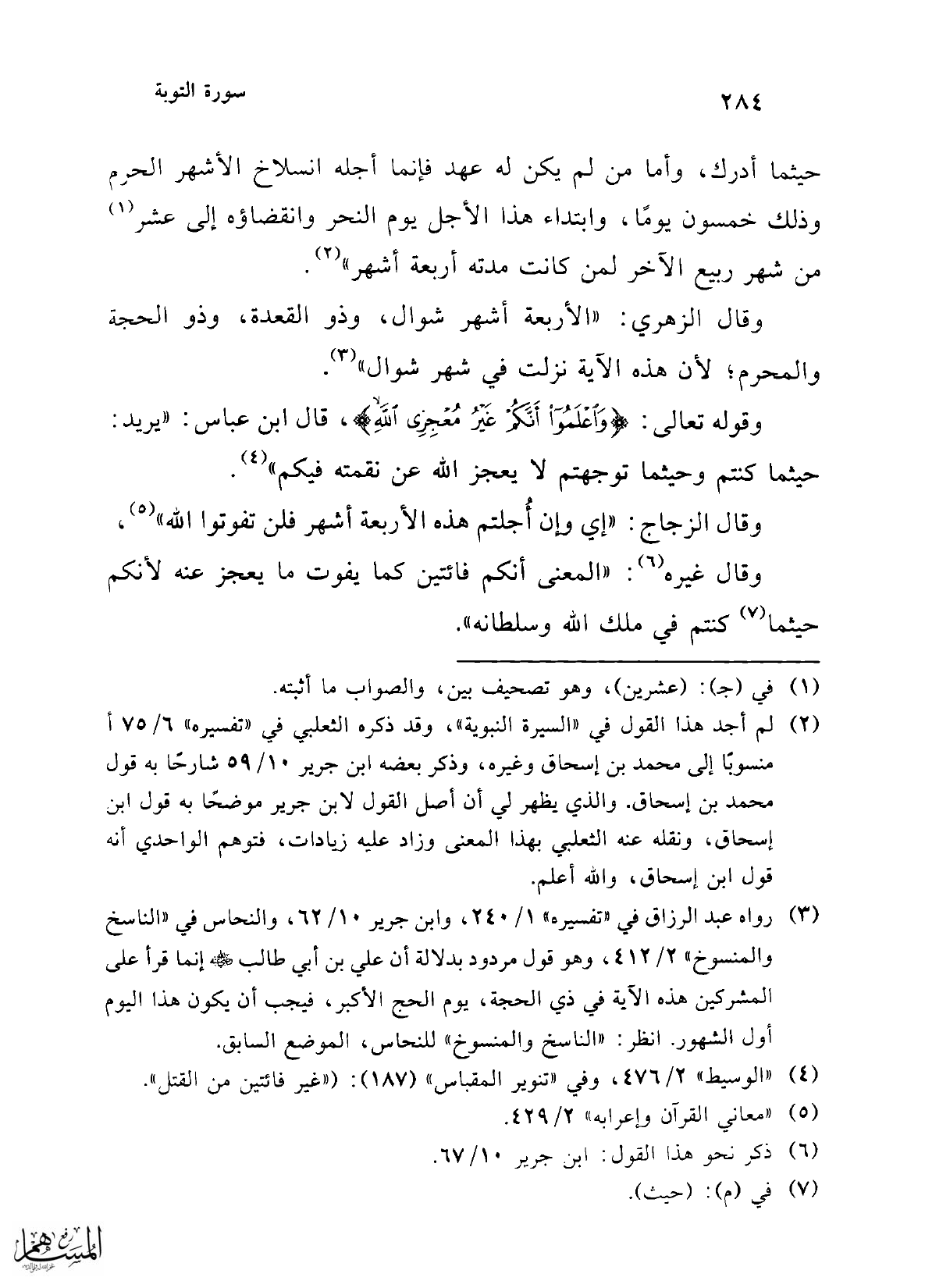 (¬3) رواه عبد الرزاق في "تفسيره" 1/ 240، وابن جرير 10/ 62، والنحاس في "الناسخ والمنسوخ" 2/ 412، وهو قول مردود بدلالة أن علي بن أبي طالب -رضي الله عنه- إنما قرأ على المشركين هذه الآية في ذي الحجة، يوم الحج الأكبر، فيجب أن يكون هذا اليوم أول الشهور. انظر: "الناسخ والمنسوخ" للنحاس، الموضع السابق.