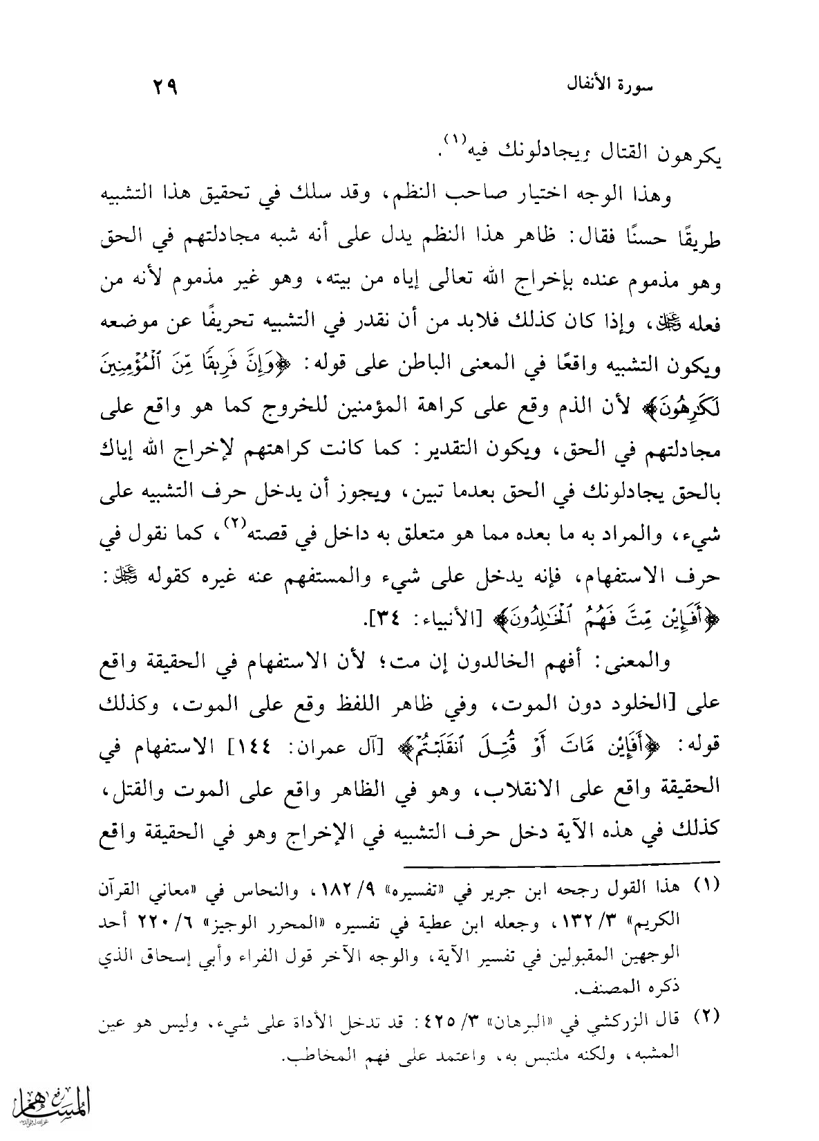 (¬2) قال الزركشي في "البرهان" 3/ 425: قد تدخل الآداة على شيء؛ وليس هو عين المشبه، ولكنه ملتبس به, واعتمد على فهم المخاطب.