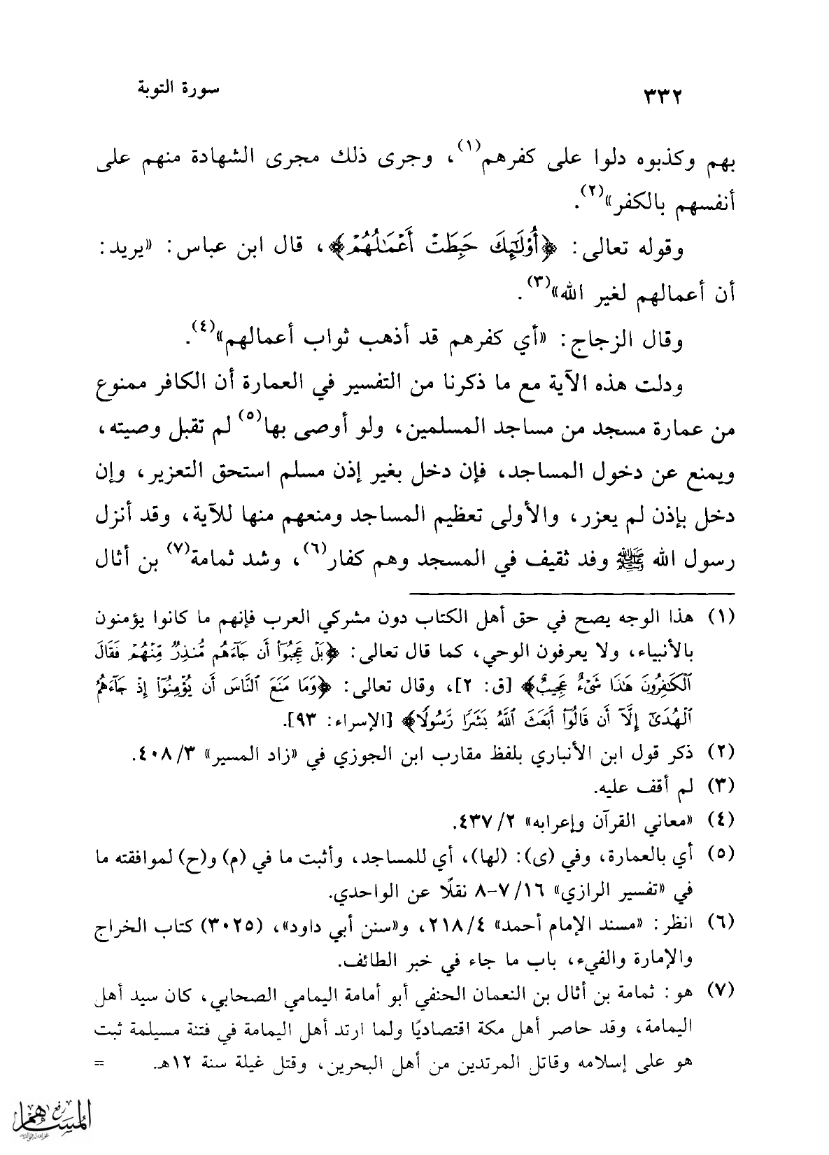 (¬5) أي بالعمارة، وفي (ى): (لها)، أي للمساجد، وأثبت ما في (م) و (ح) لموافقته ما في"تفسير الرازي" 16/ 7 - 8 نقلاً عن الواحدي.
