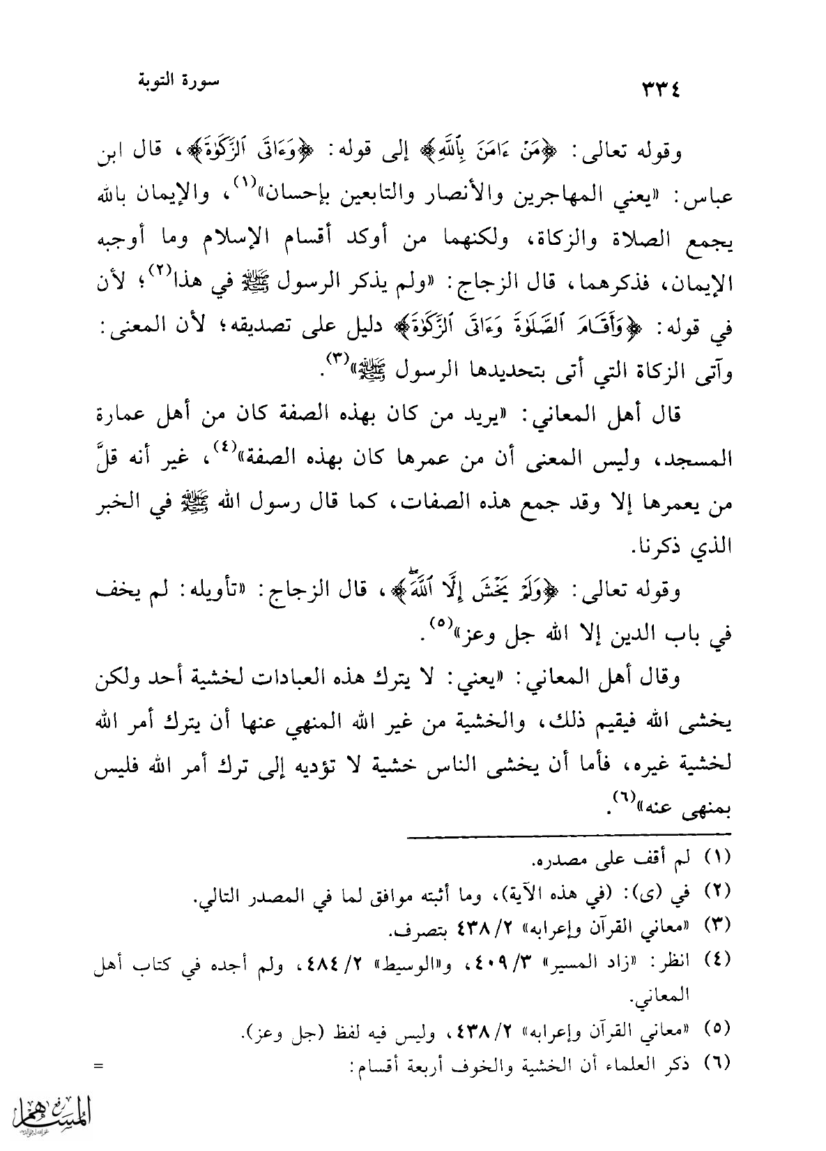 قال أهل المعاني: "يريد من كان بهذه الصفة كان من أهل عمارة المسجد، وليس المعنى أن من عمرها كان بهذه الصفة" (¬4)، غير أنه قلَّ من يعمرها إلا وقد جمع هذه الصفات، كما قال رسول الله -صلى الله عليه وسلم- في الخبر الذي ذكرنا.