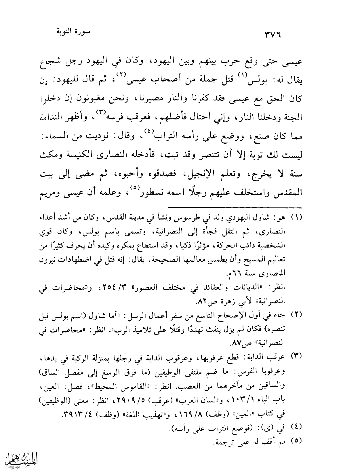 (¬2) جاء في أول الإصحاح التاسع من سفر أعمال الرسل: "أما شاول (اسم بولس قبل تنصره) فكان لم يزل ينفث تهددًا وقتلًا على تلاميذ الرب". انظر: "محاضرات في النصرانية" ص 87.