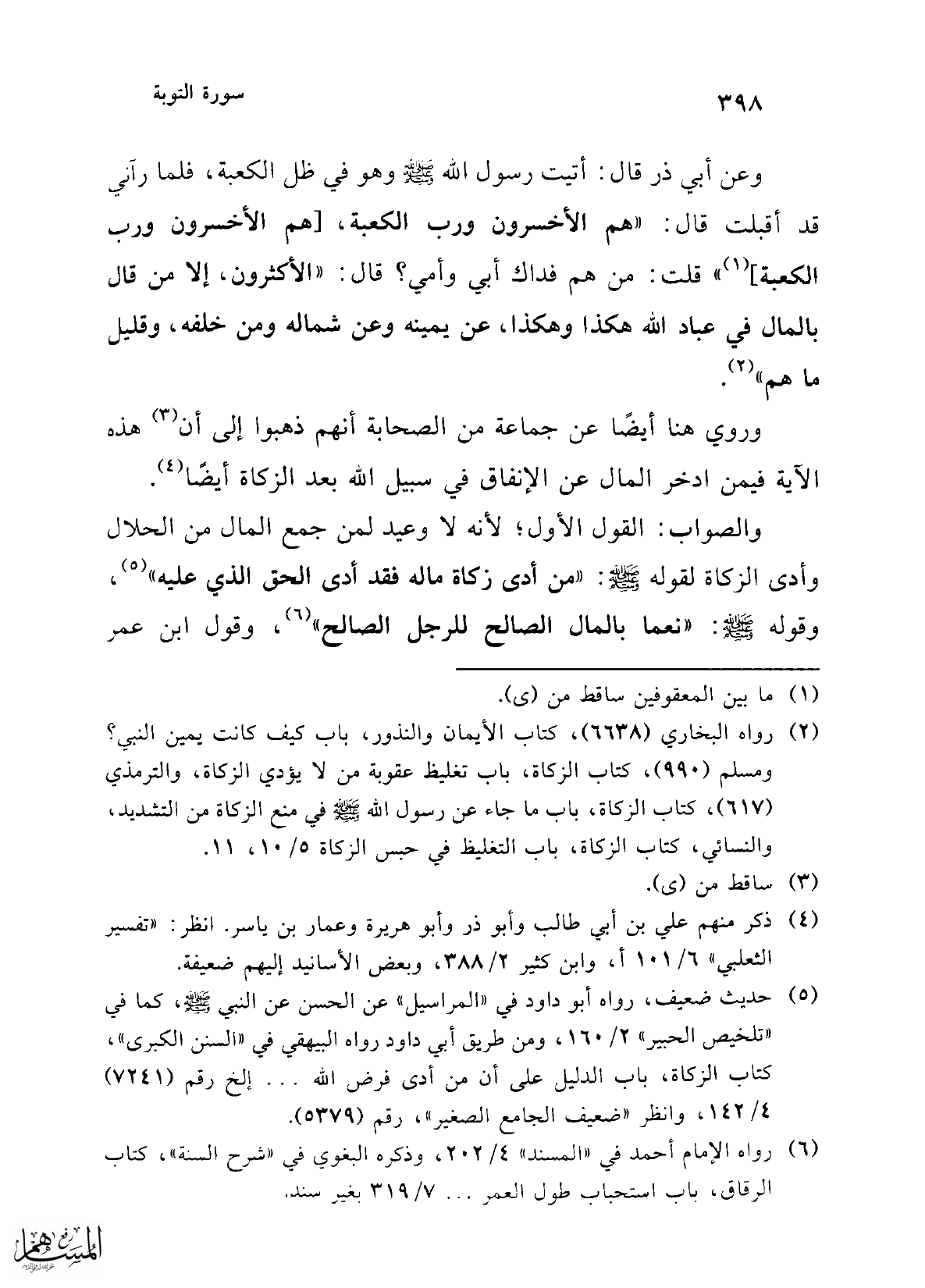 (¬2) رواه البخاري (6638)، كتاب الأيمان والنذور، باب كيف كانت يمين النبي؟ ومسلم (990)، كتاب الزكاة، باب تغليظ عقوبة من لا يؤدي الزكاة، والترمذي (617)، كتاب الزكاة، باب ما جاء عن رسول الله -صلى الله عليه وسلم- في منع الزكاة من التشديد، والنسائي، كتاب الزكاة، باب التغليظ في حبس الزكاة 5/ 10، 11.