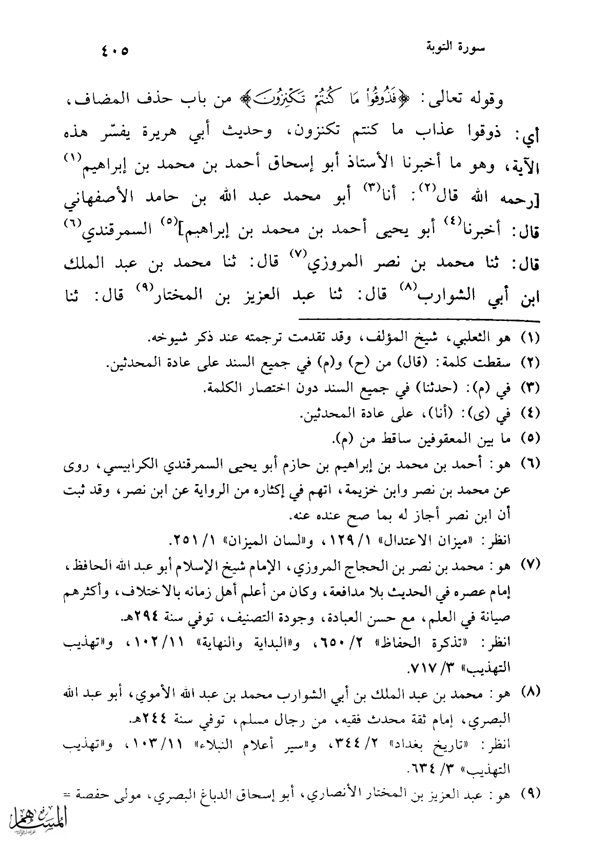 (¬8) هو: محمد بن عبد الملك بن أبي الشوارب محمد بن عبد الله الأموي، أبو عبد الله البصري، إمام ثقة محدث فقيه، من رجال مسلم، توفي سنة 244 هـ.