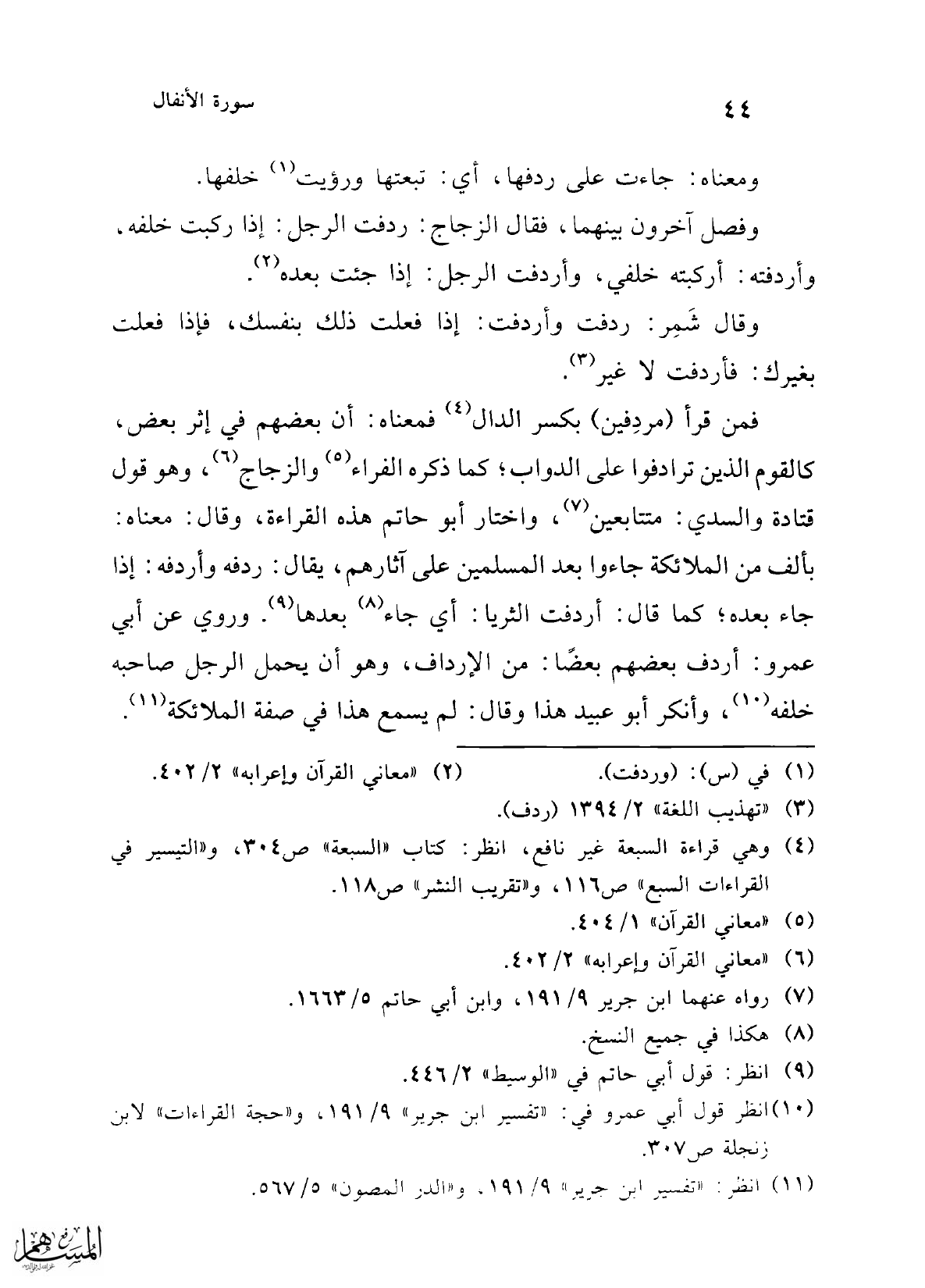 (¬11) انظر: "تفسير ابن جرير" 9/ 199, و"الدر المصون" 5/ 576.