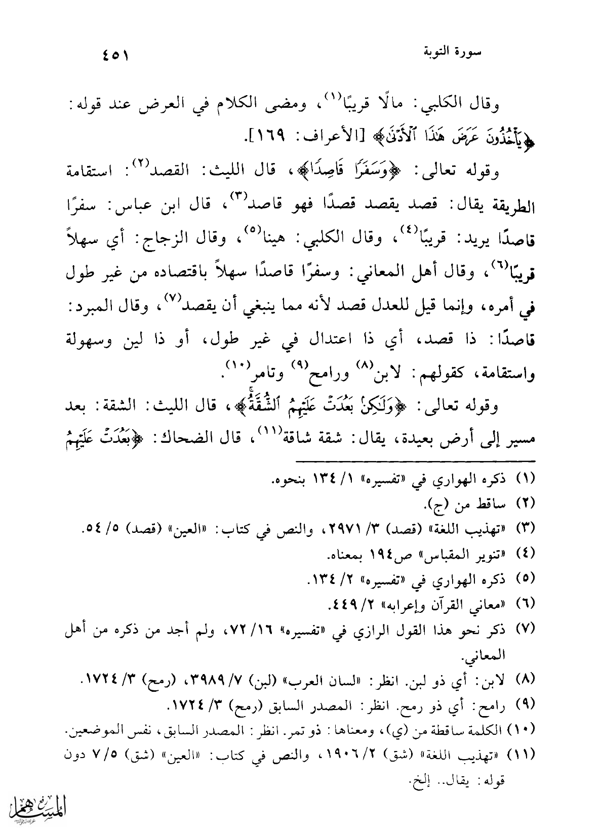 (¬3) "تهذيب اللغة" (قصد) 3/ 2971، والنص في كتاب: "العين" (قصد) 5/ 54.