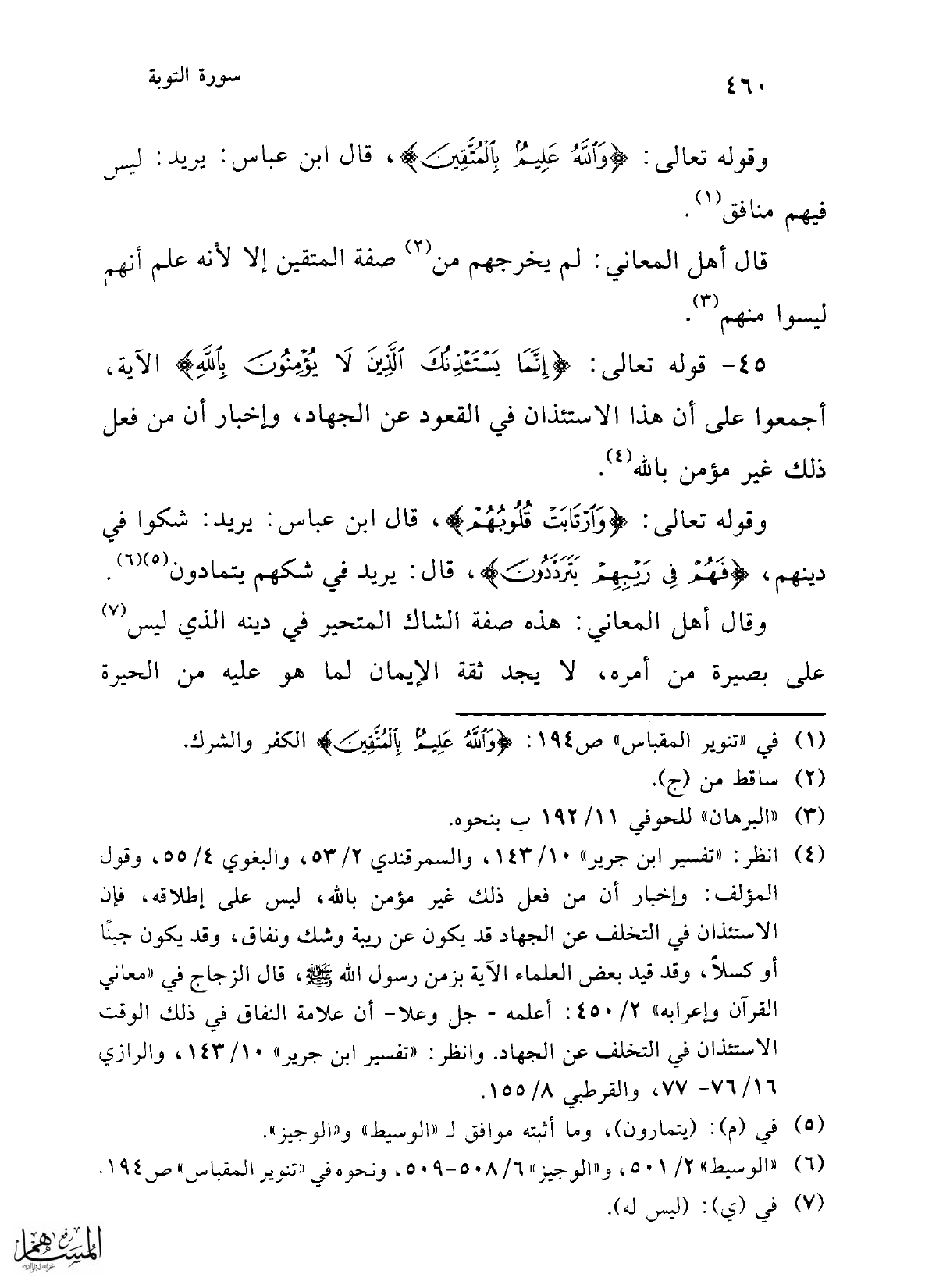 45 - قوله تعالى: {إِنَّمَا يَسْتَأْذِنُكَ الَّذِينَ لَا يُؤْمِنُونَ بِاللَّهِ} الآية، أجمعوا على أن هذا الاستئذان في القعود عن الجهاد، وإخبار أن من فعل ذلك غير مؤمن بالله (¬4).