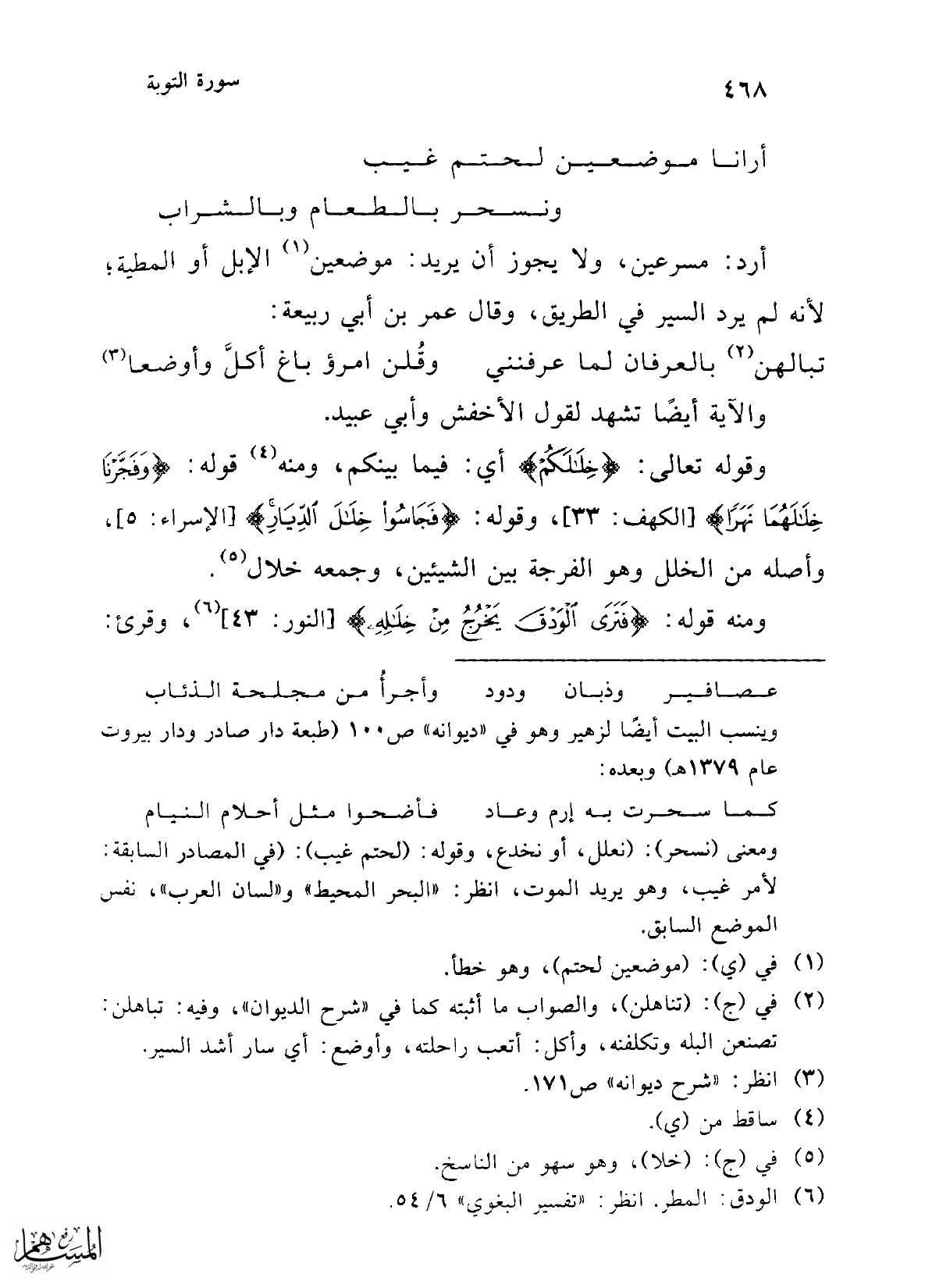ومعنى (نسحر): (نعلل، أو نخدع، وقوله: (لحتم غيب): (في المصادر السابقة: لأمر غيب، وهو يريد الموت، انظر: "البحر المحيط" و"لسان العرب"، نفس الموضع السابق.