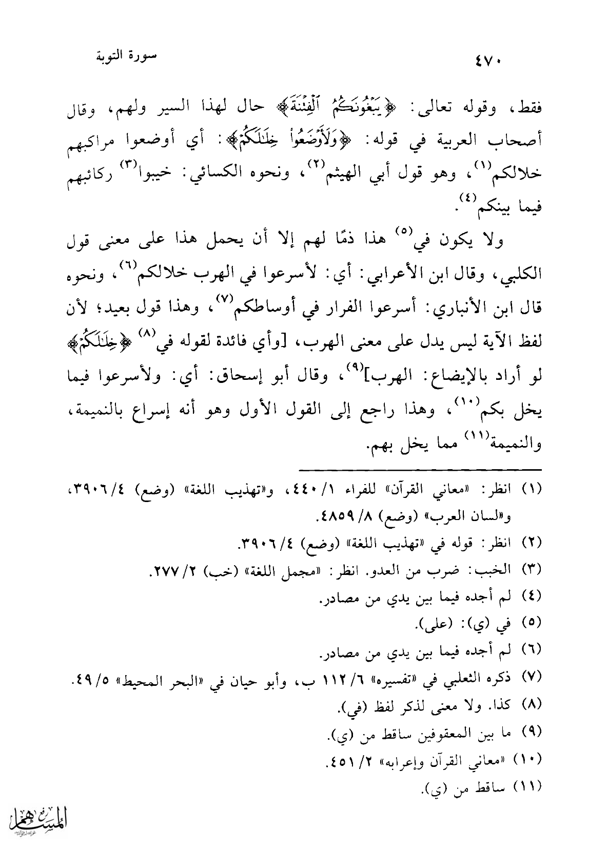 (¬10) "معاني القرآن وإعرابه" 2/ 451.
