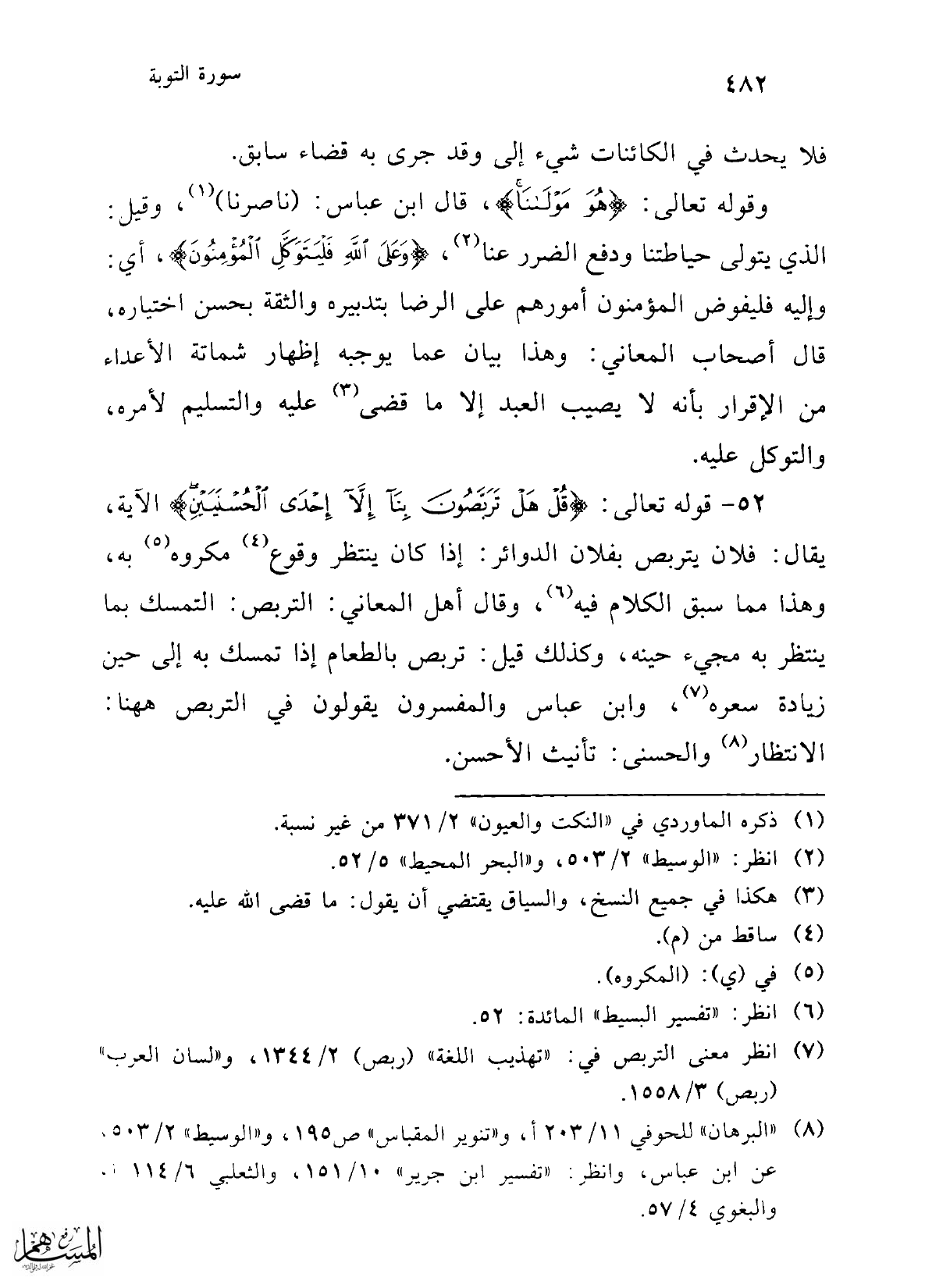 (¬6) انظر: "تفسير البسيط" المائدة: 52.