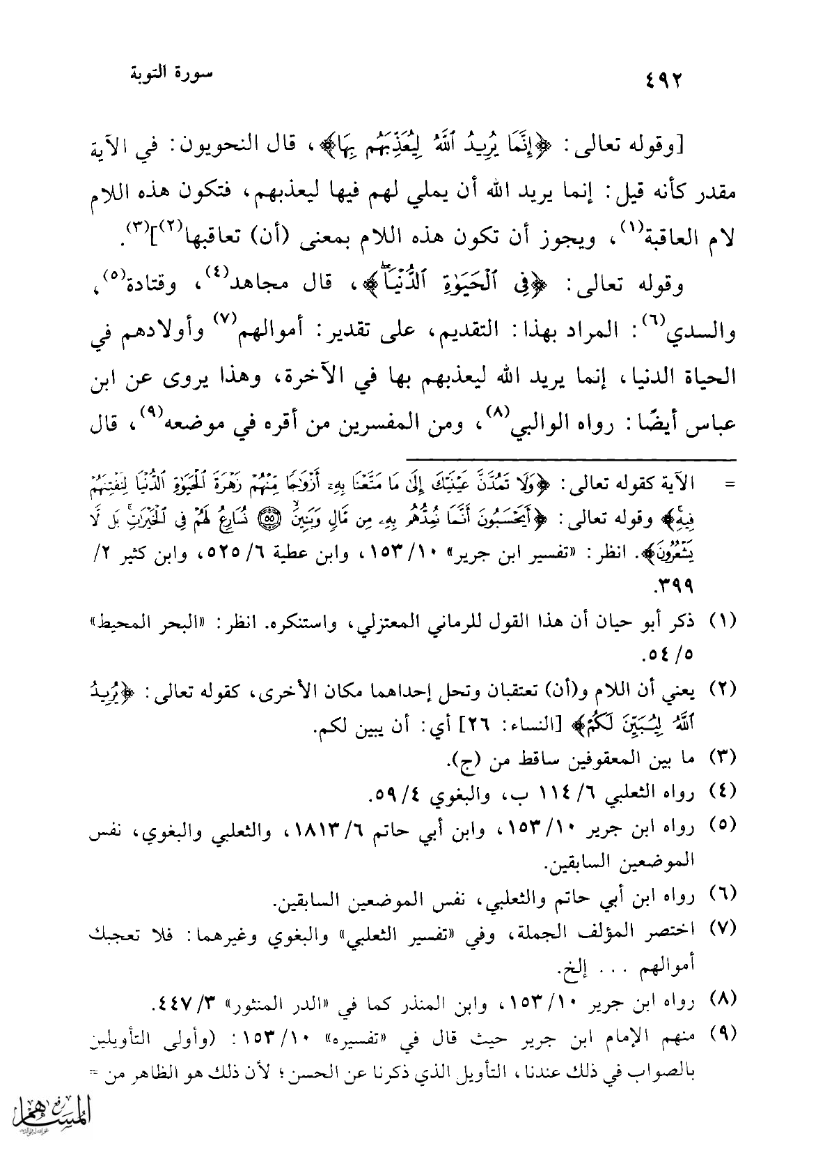 [وقوله تعالى: {إِنَّمَا يُرِيدُ اللَّهُ لِيُعَذِّبَهُمْ بِهَا}، قال النحويون: في الآية مقدر كأنه قيل: إنما يريد الله أن يملي لهم فيها ليعذبهم، فتكون هذه اللام لام العاقبة (¬1)، ويجوز أن تكون هذه اللام بمعنى (أن) تعاقبها (¬2)] (¬3).