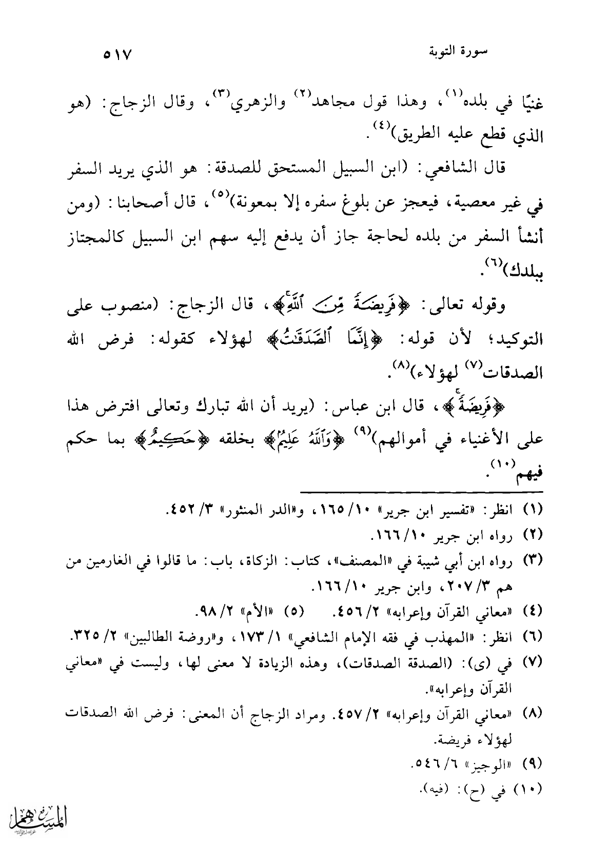 (¬8) "معاني القرآن وإعرابه" 2/ 457. ومراد الزجاج أن المعنى: فرض الله الصدقات لهؤلاء فريضة.