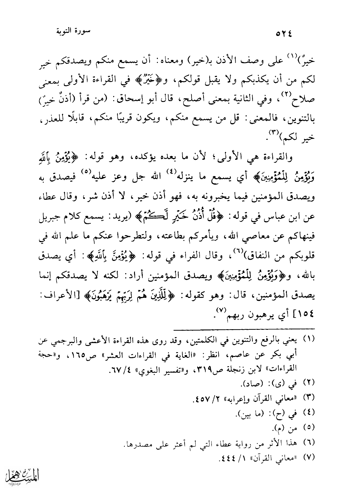 (¬7) "معاني القرآن" 1/ 444.