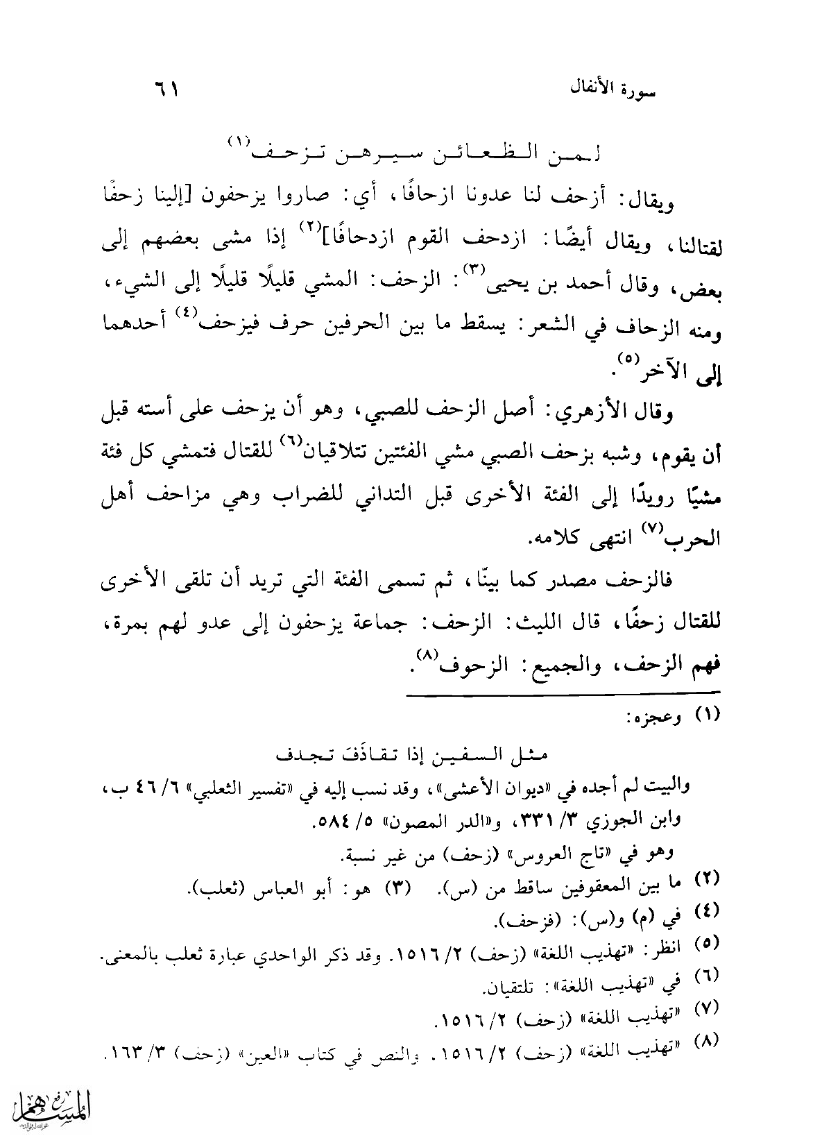 (¬8) "تهذيب اللغة" (زحف) 2/ 1516 , والنص في كتاب "العين" (زحف) 3/ 163.