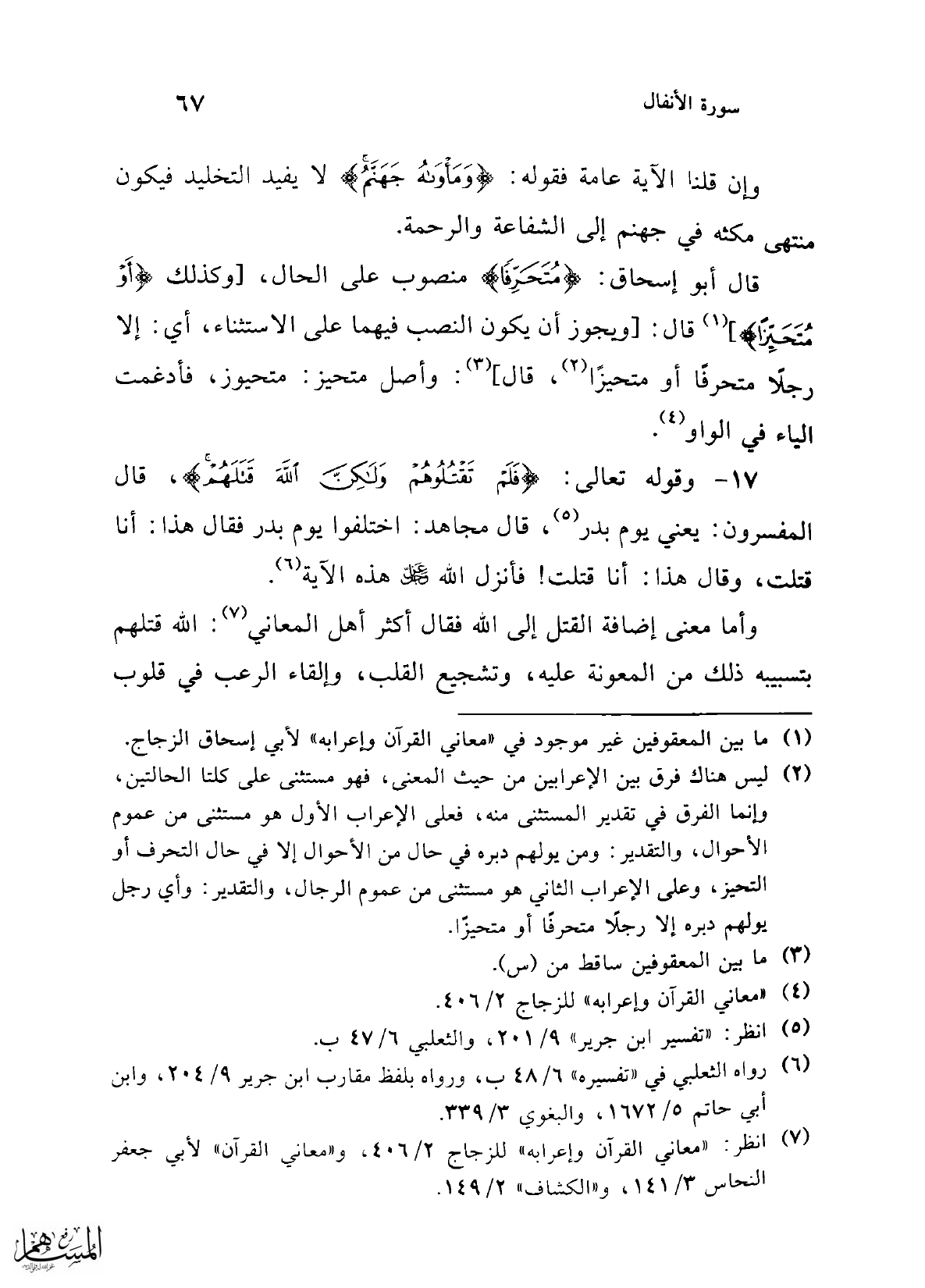 (¬7) انظر: "معاني القرآن وإعرابه" للزجاج 2/ 406، و"معاني القرآن" لأبي جعفر النحاس 3/ 141، و"الكشاف" 2/ 149.