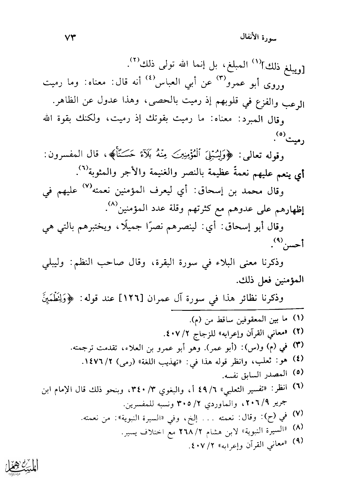 (¬9) "معاني القرآن وإعرابه" 2/ 407.