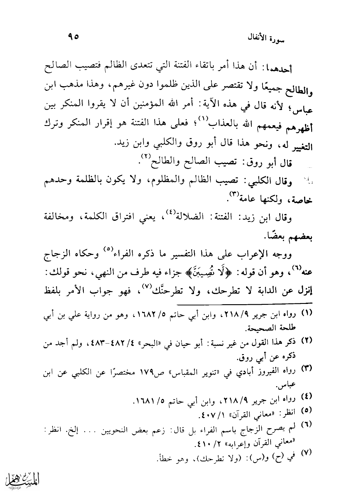 (¬1) رواه ابن جرير 9/ 218، وابن أبي حاتم 5/ 1682، وهو من رواية علي بن أبي طلحة الصحيحة.