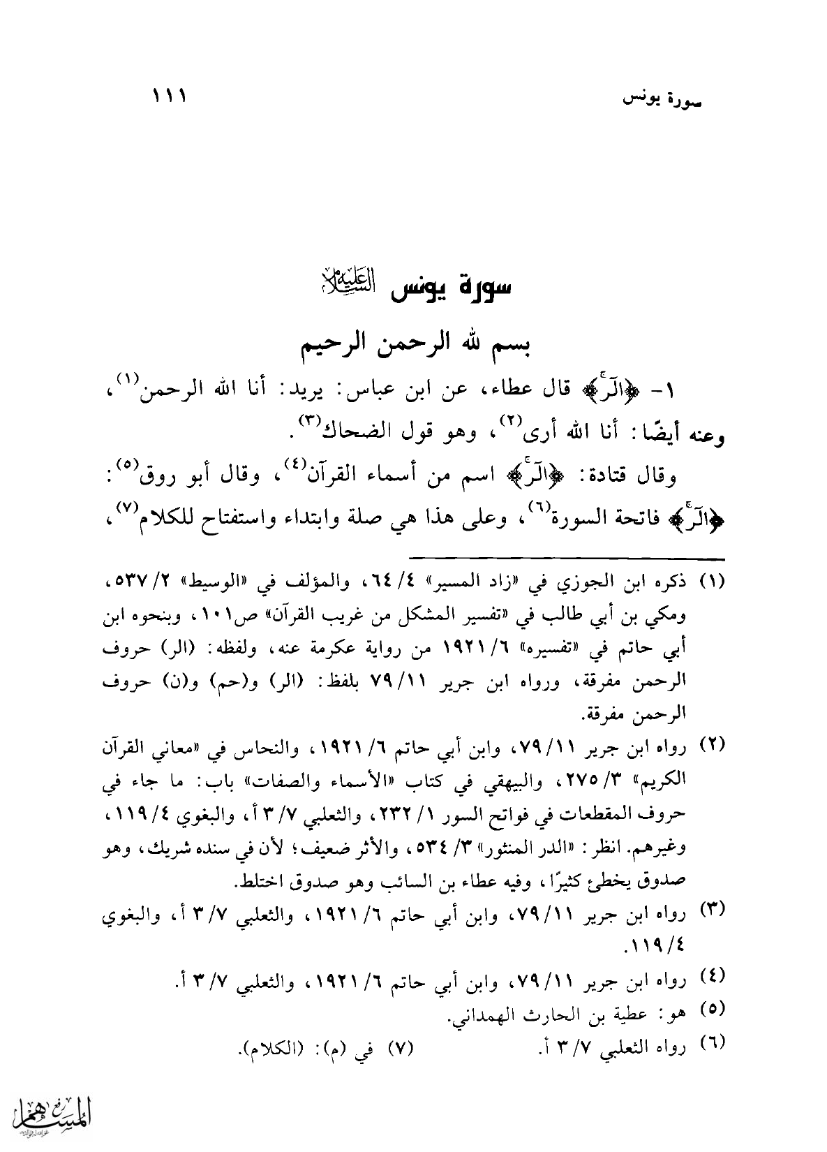 1 - {الر} قال عطاء، عن ابن عباس: يريد: أنا الله الرحمن (¬1)، وعنه أيضًا: أنا الله أرى (¬2)، وهو قول الضحاك (¬3).