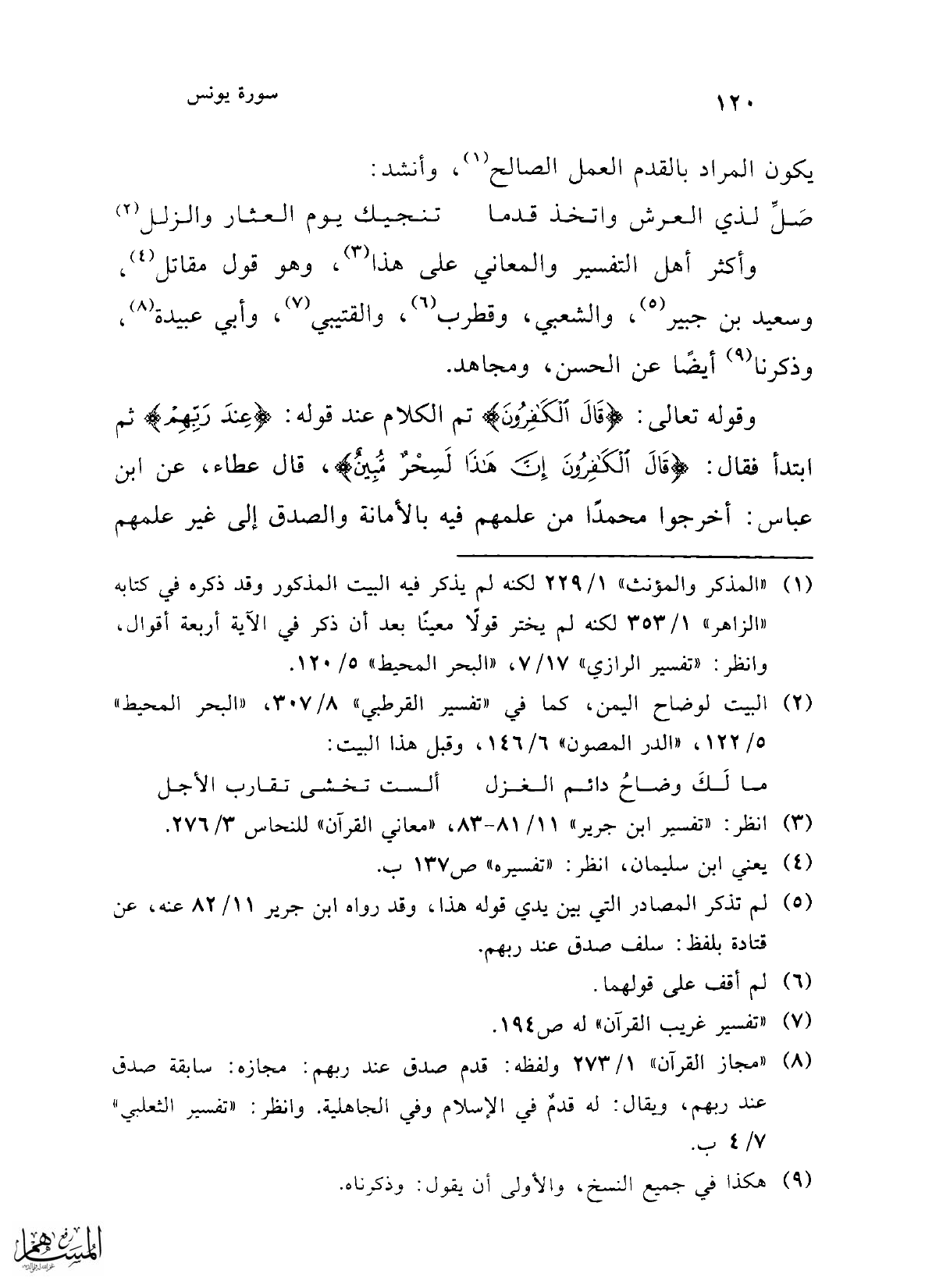 (¬8) "مجاز القرآن" 1/ 273 ولفظه: قدم صدق عند ربهم: مجازه: سابقة صدق عند ربهم، ويقال: له قدمٌ في الإسلام وفي الجاهلية. وانظر: "تفسير الثعلبي" 7/ 4 ب.