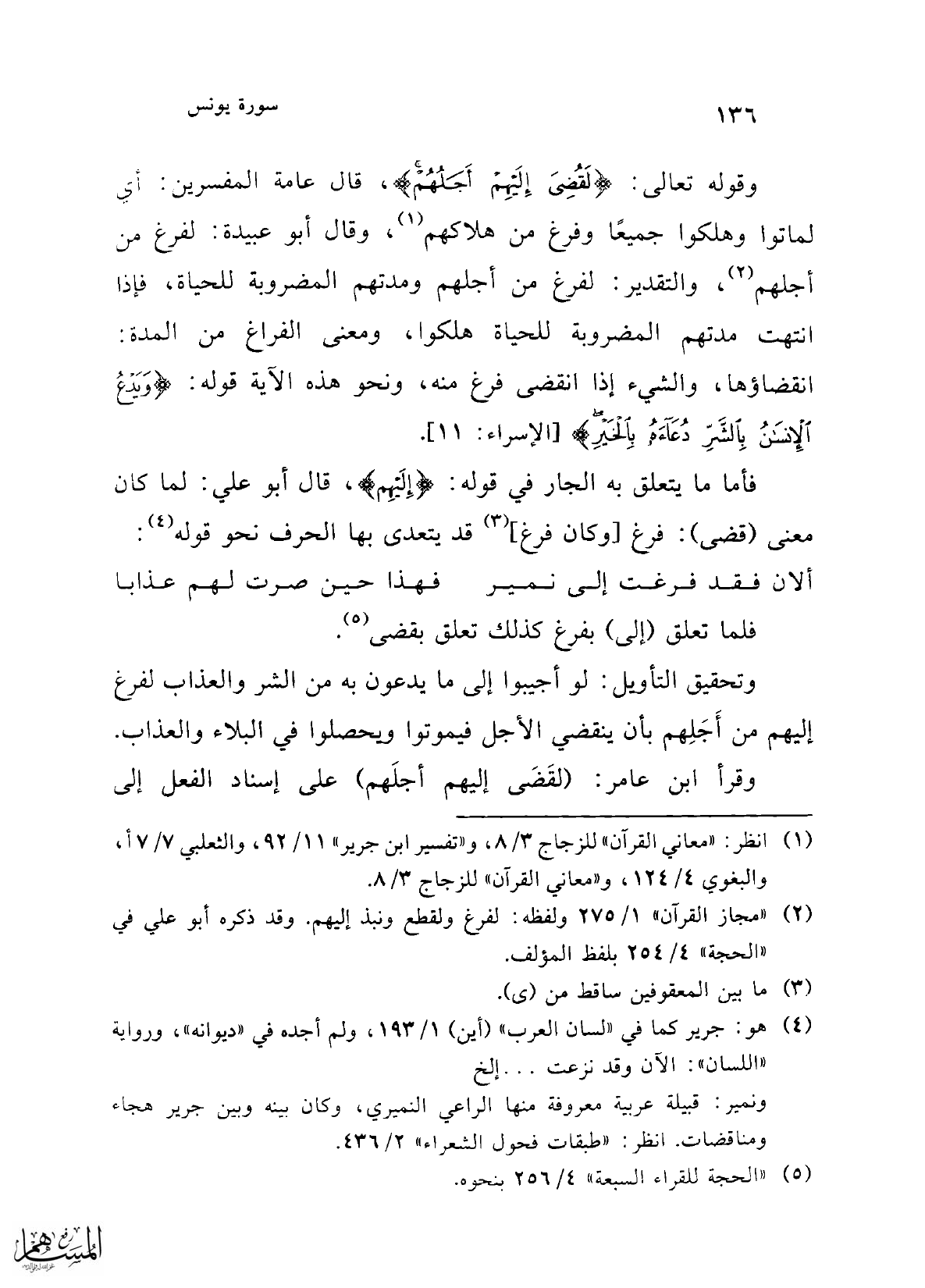 فأما ما يتعلق به الجار في قوله: {إِلَيْهِمْ}، قال أبو علي: لما كان معنى (قضى): فرغ [وكان فرغ] (¬3) قد يتعدى بها الحرف نحو قوله (¬4):
