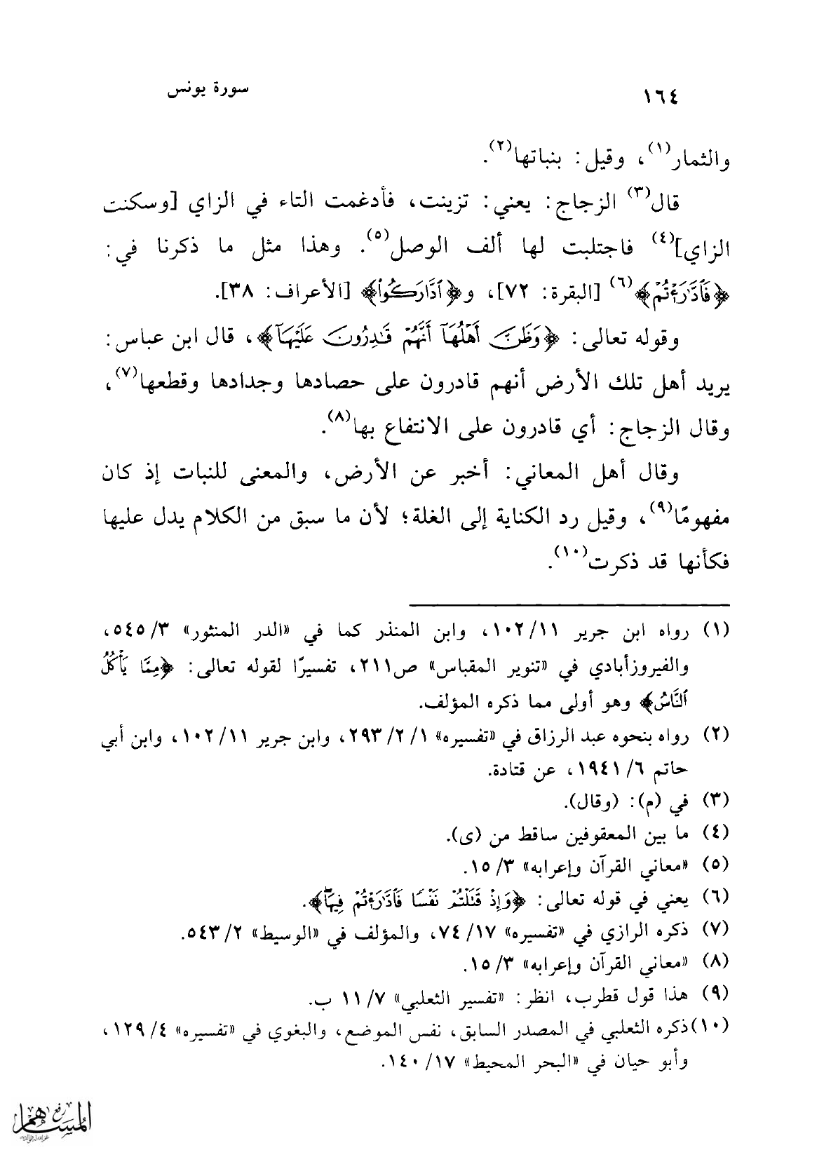 (¬10) ذكره الثعلبي في المصدر السابق، نفس الموضع، والبغوي في "تفسيره" 4/ 129، وأبو حيان في "البحر المحيط" 17/ 140.