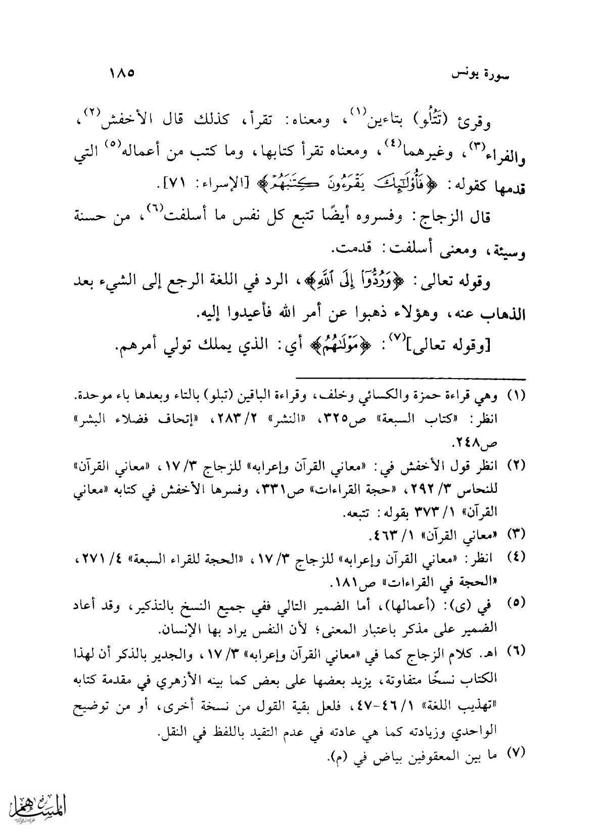 (¬6) اهـ. كلام الزجاج كما في "معاني القرآن واعرابه" 3/ 17، والجدير بالذكر أن لهذا الكتاب نسخًا متفاوتة، يزيد بعضها على بعض كما بينه الأزهري في مقدمة كتابه "تهذيب اللغة" 1/ 46 - 47، فلعل بقية القول من نسخة أخرى، أو من توضيح الواحدي وزيادته كما هي عادته في عدم التقيد باللفظ في النقل.