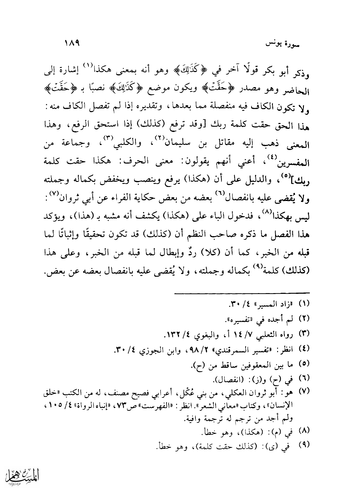 (¬9) في (ى): (كذلك حقت كلمة)، وهو خطأ.